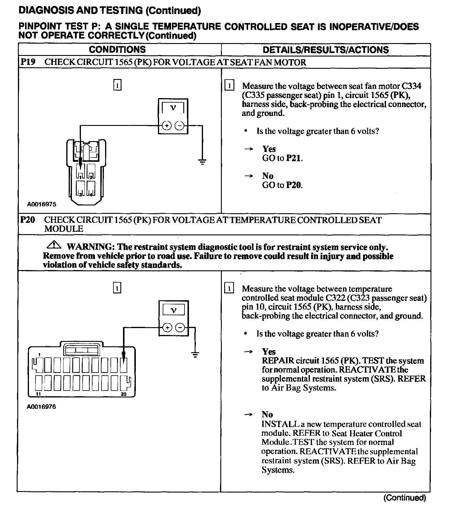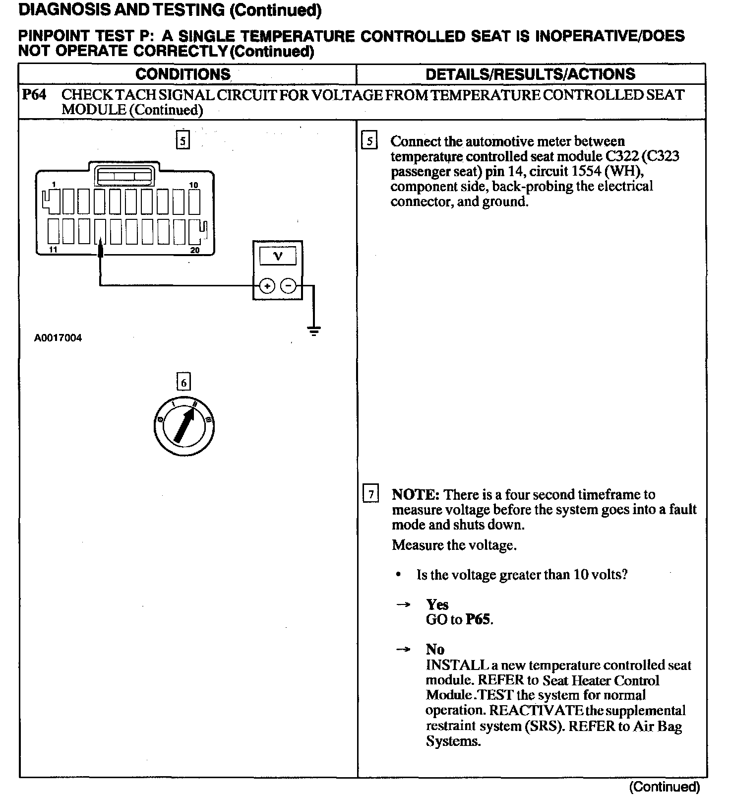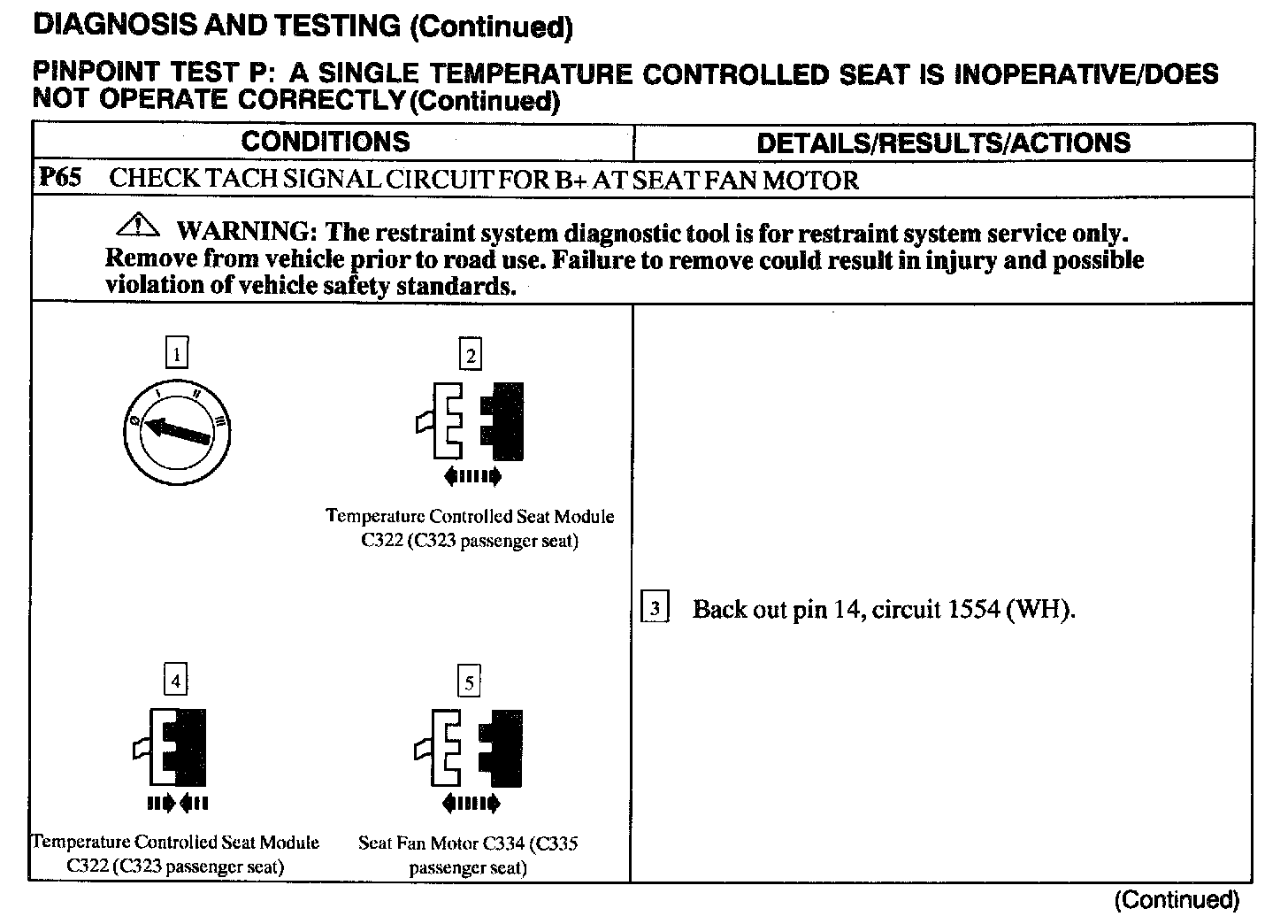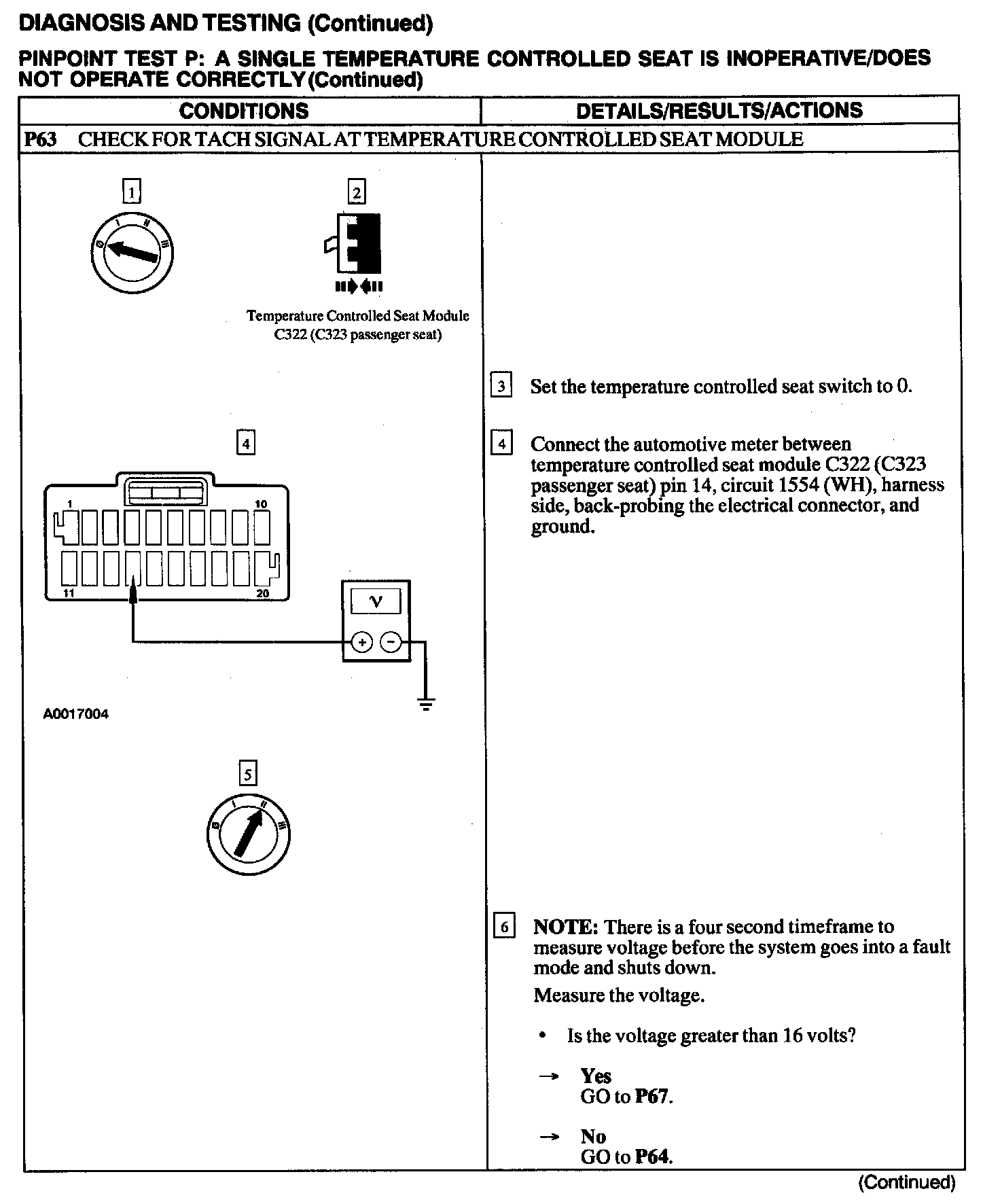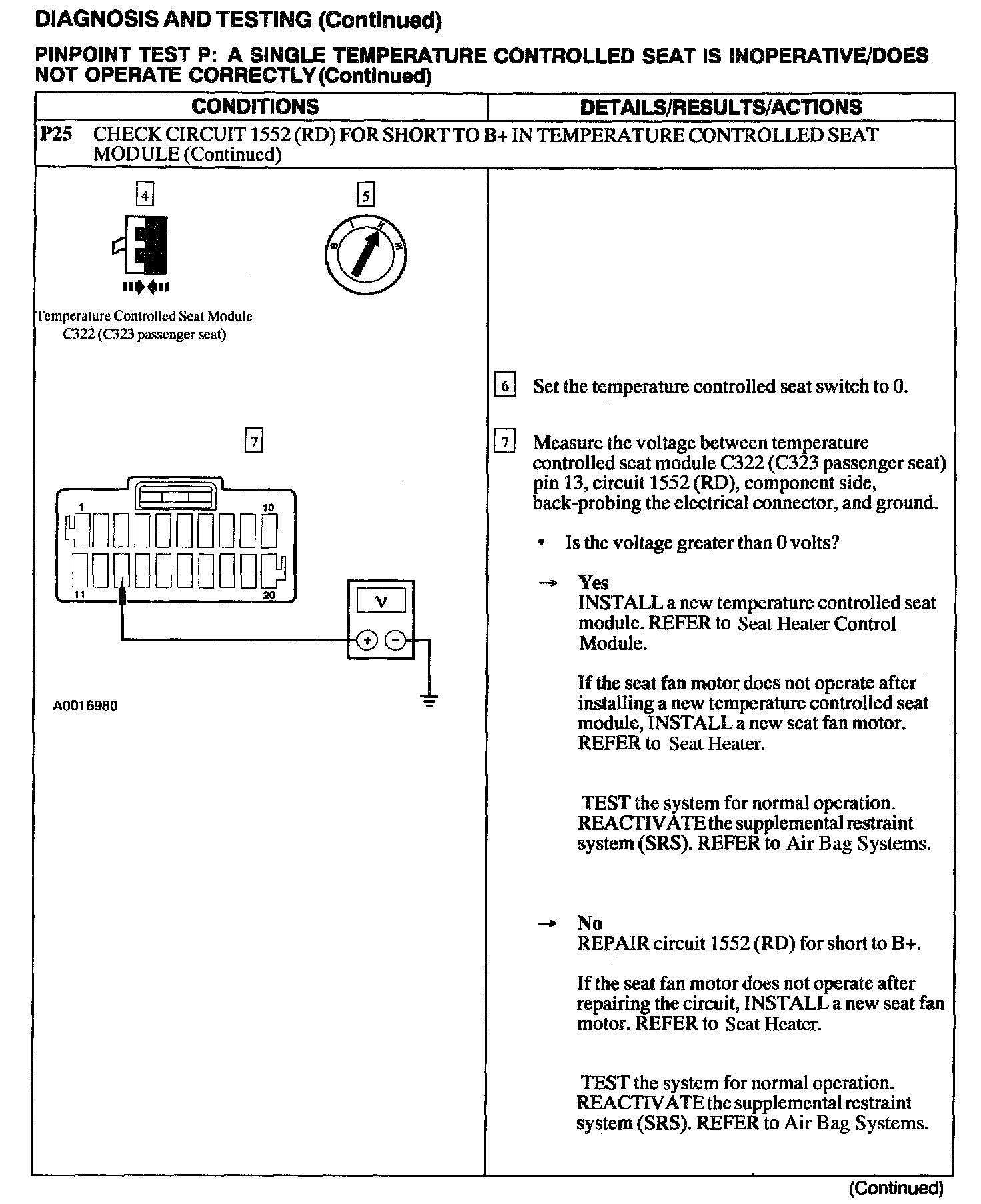 Test P: A Single Temperature Controlled Seat Is Inoperative/Does Not Operate Correctly