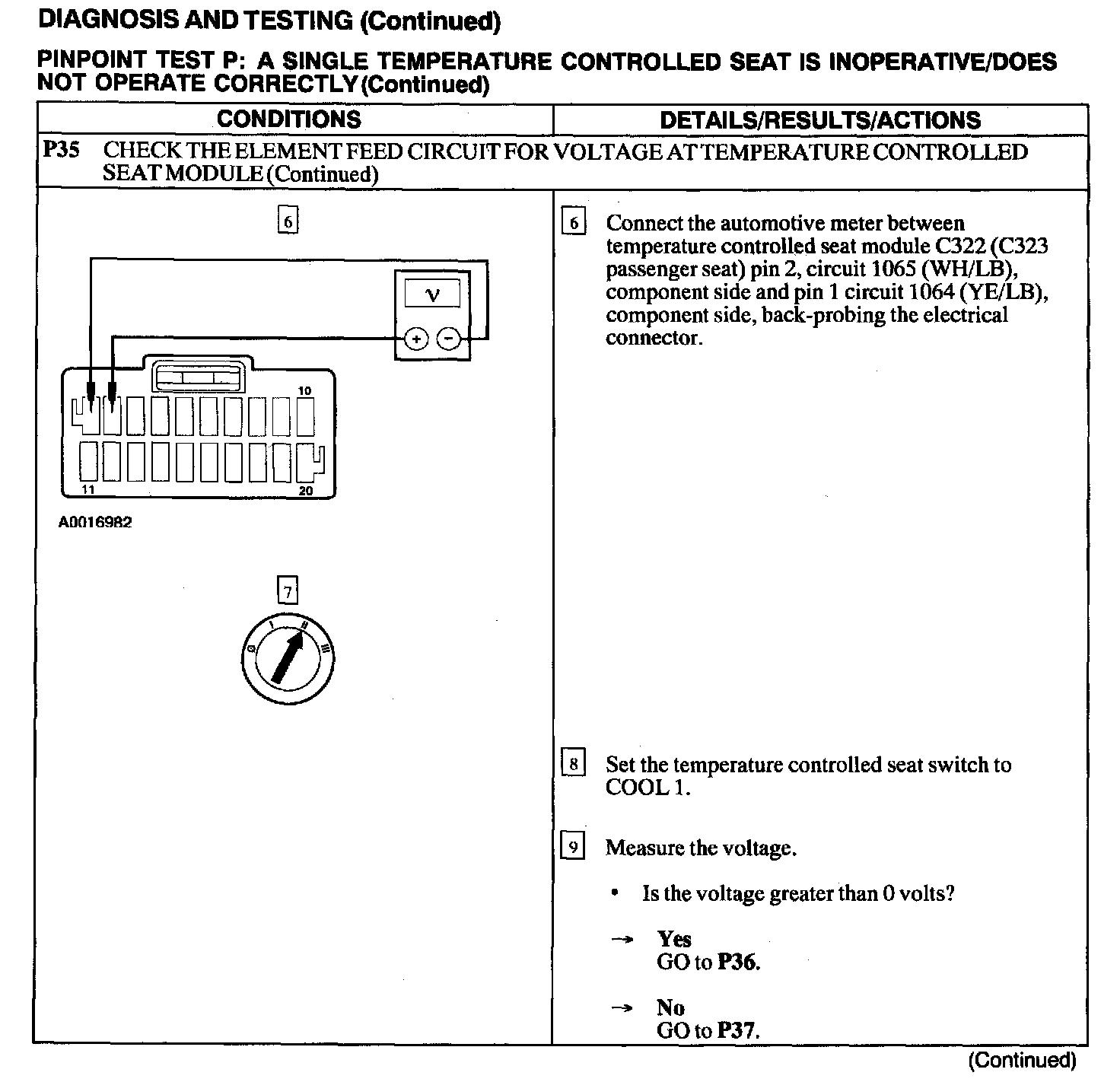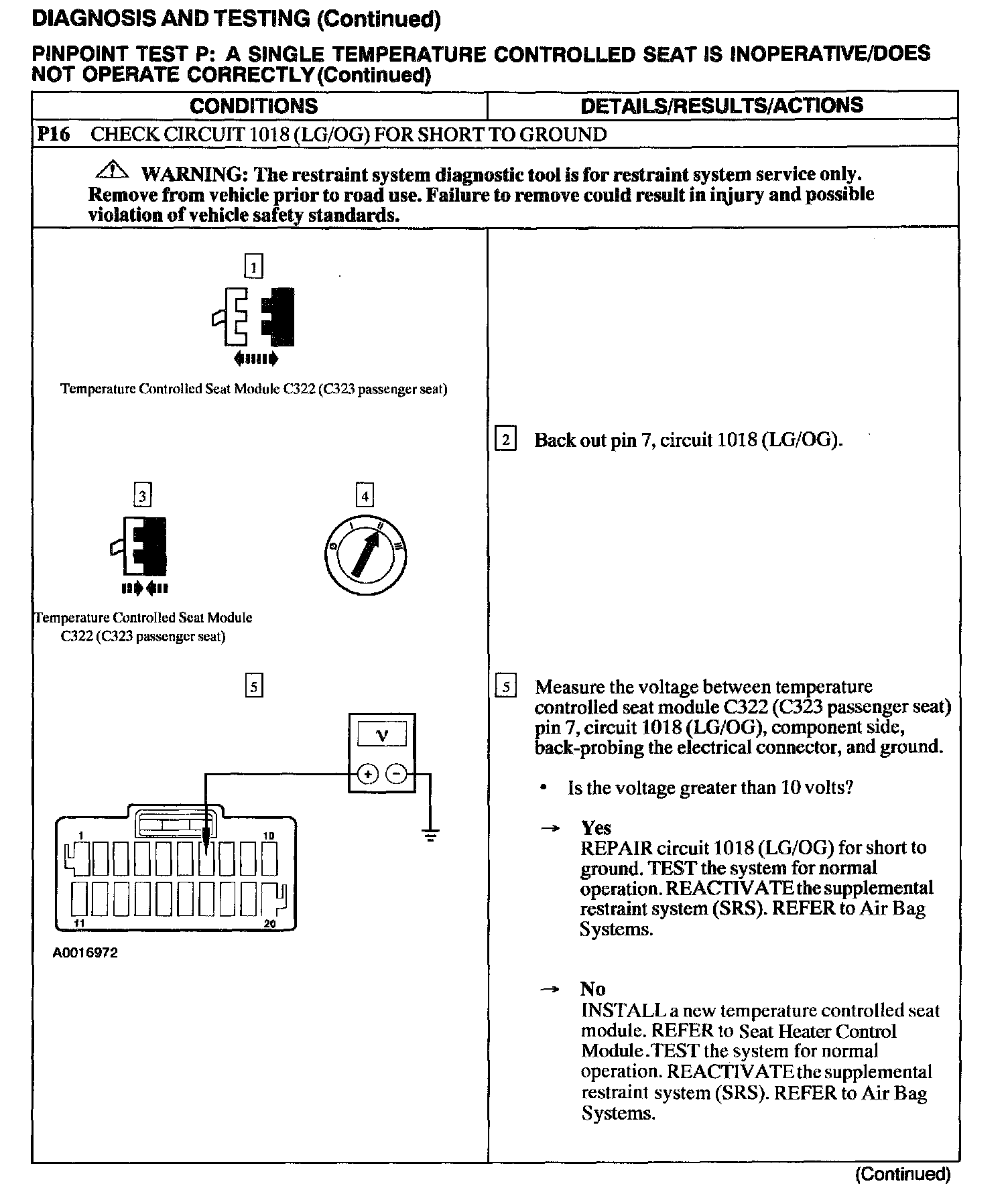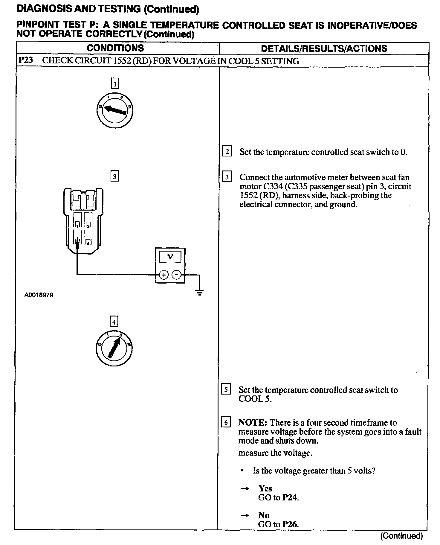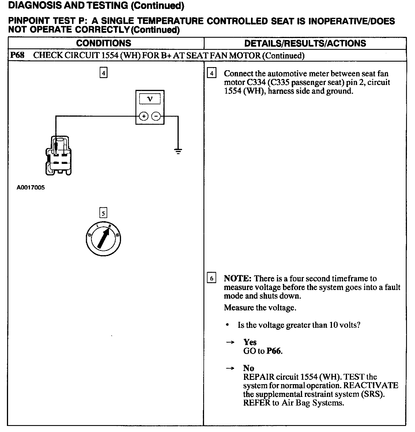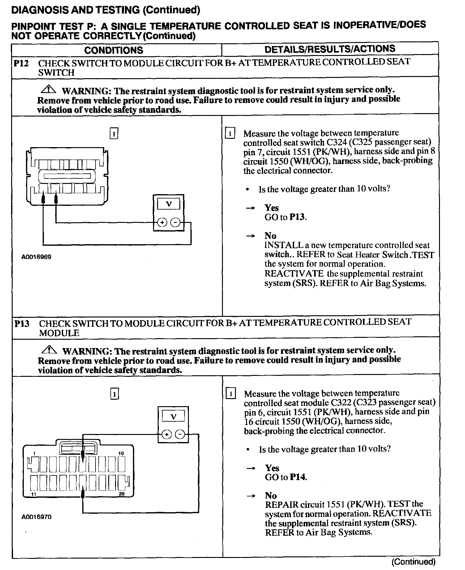Test P: A Single Temperature Controlled Seat Is Inoperative/Does Not Operate Correctly