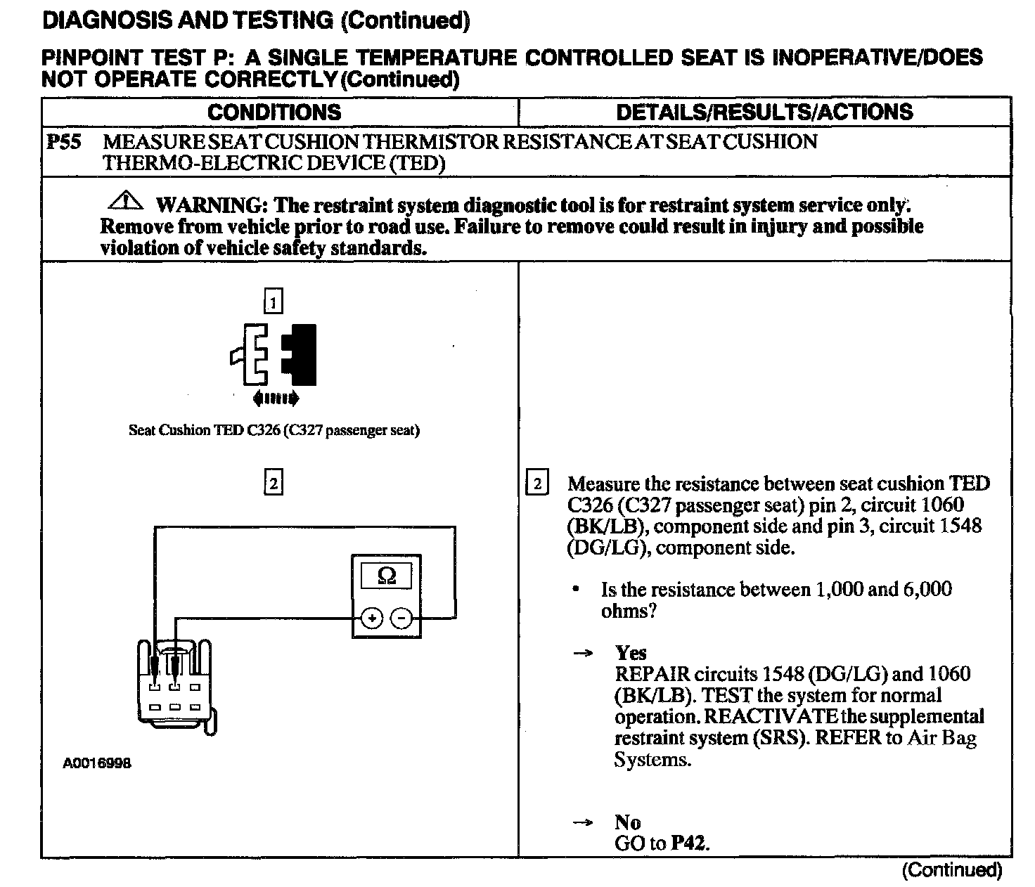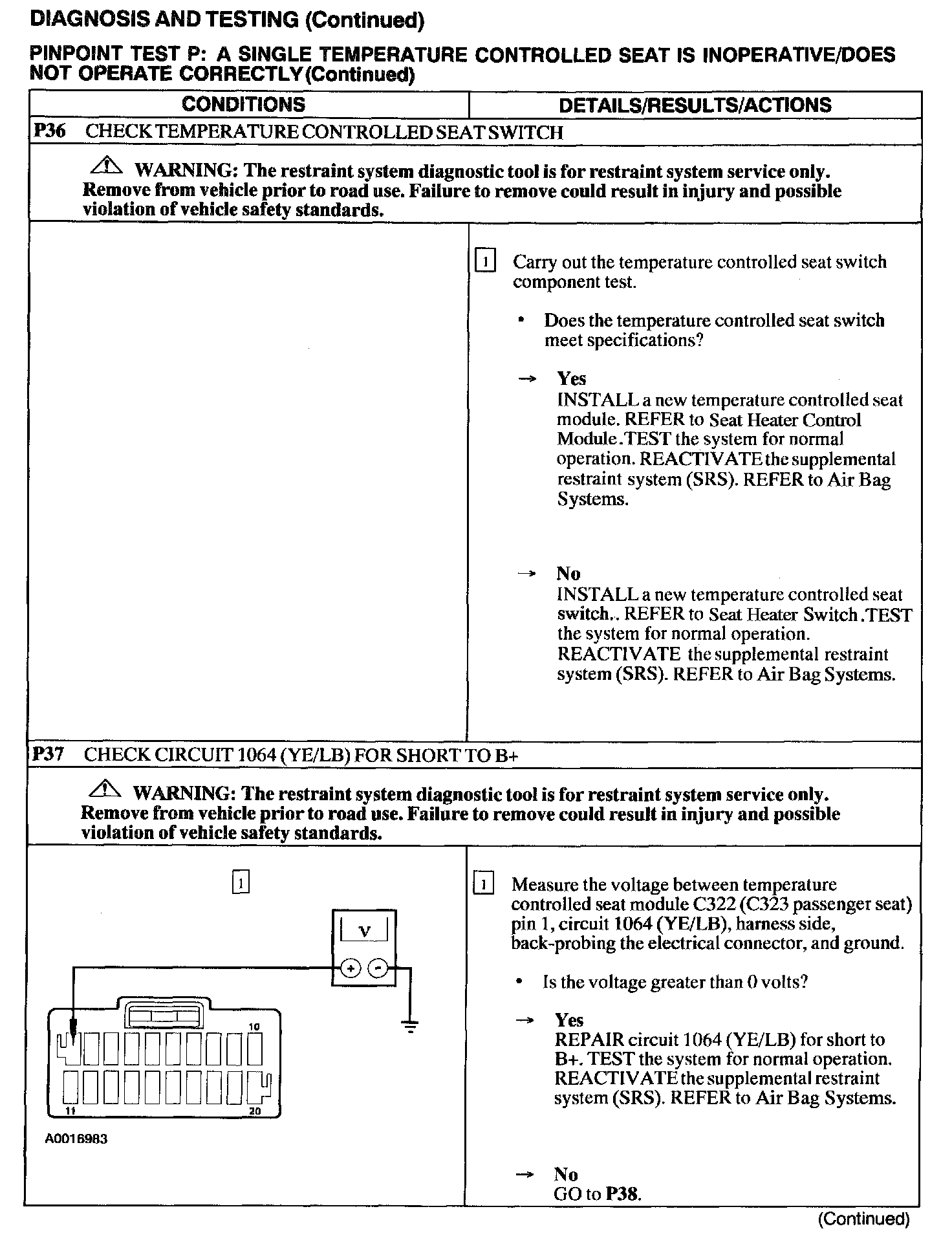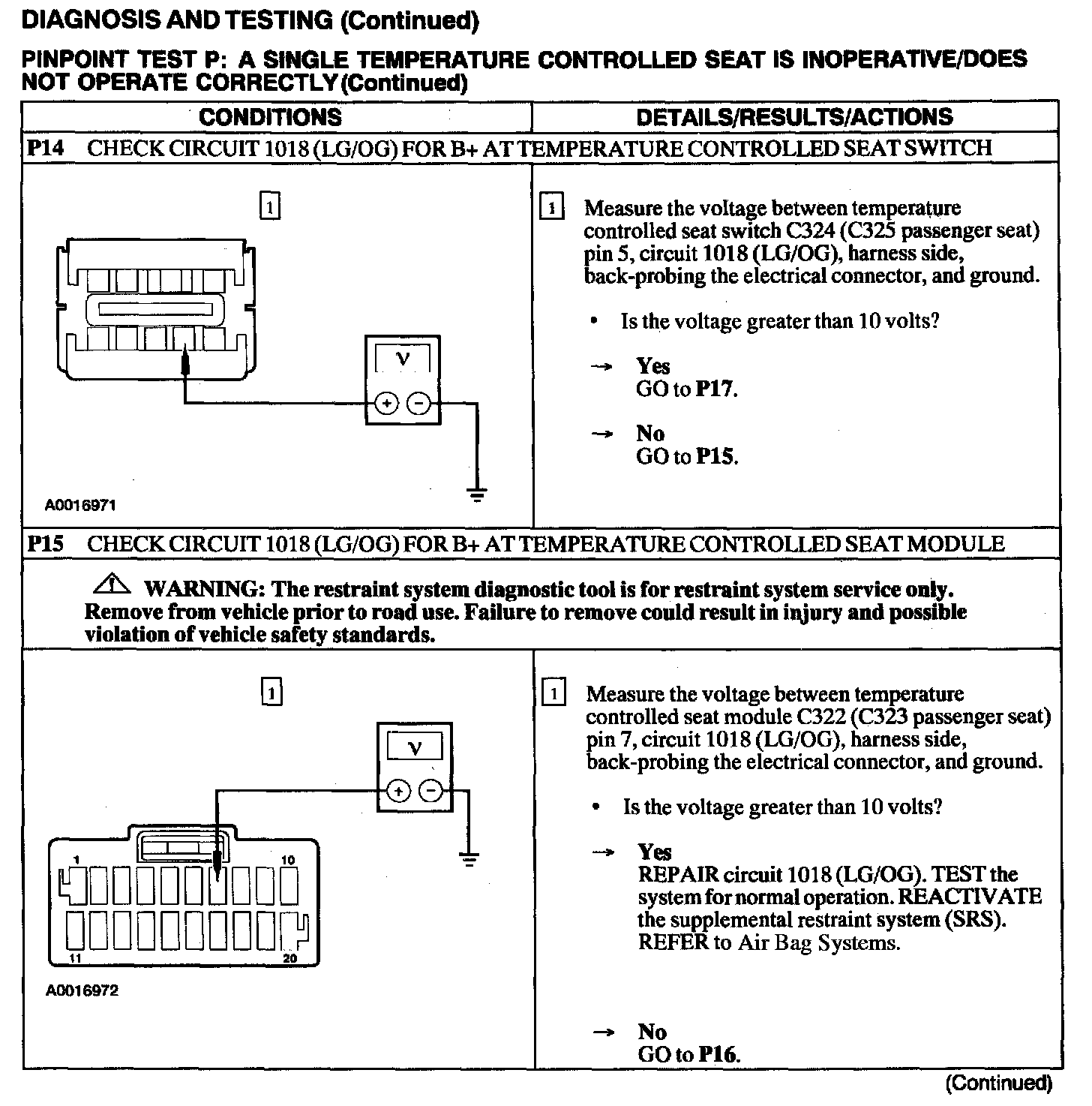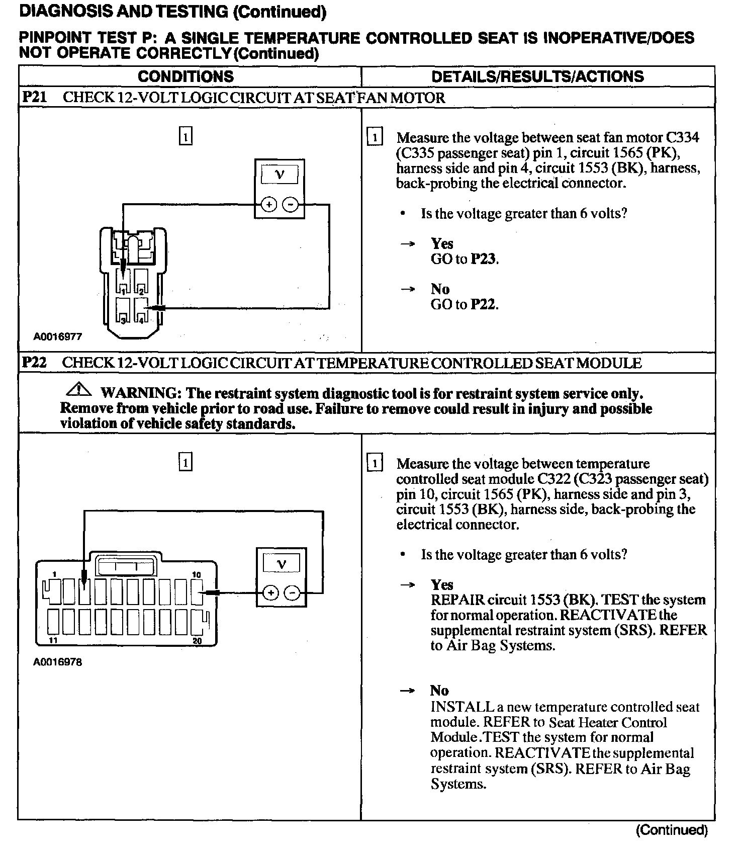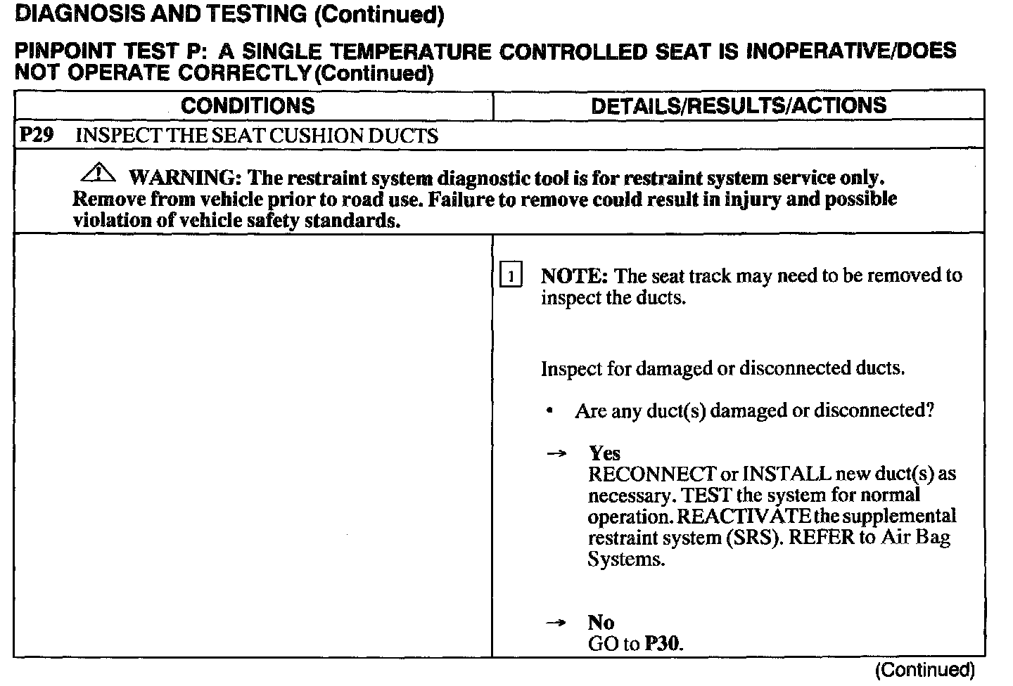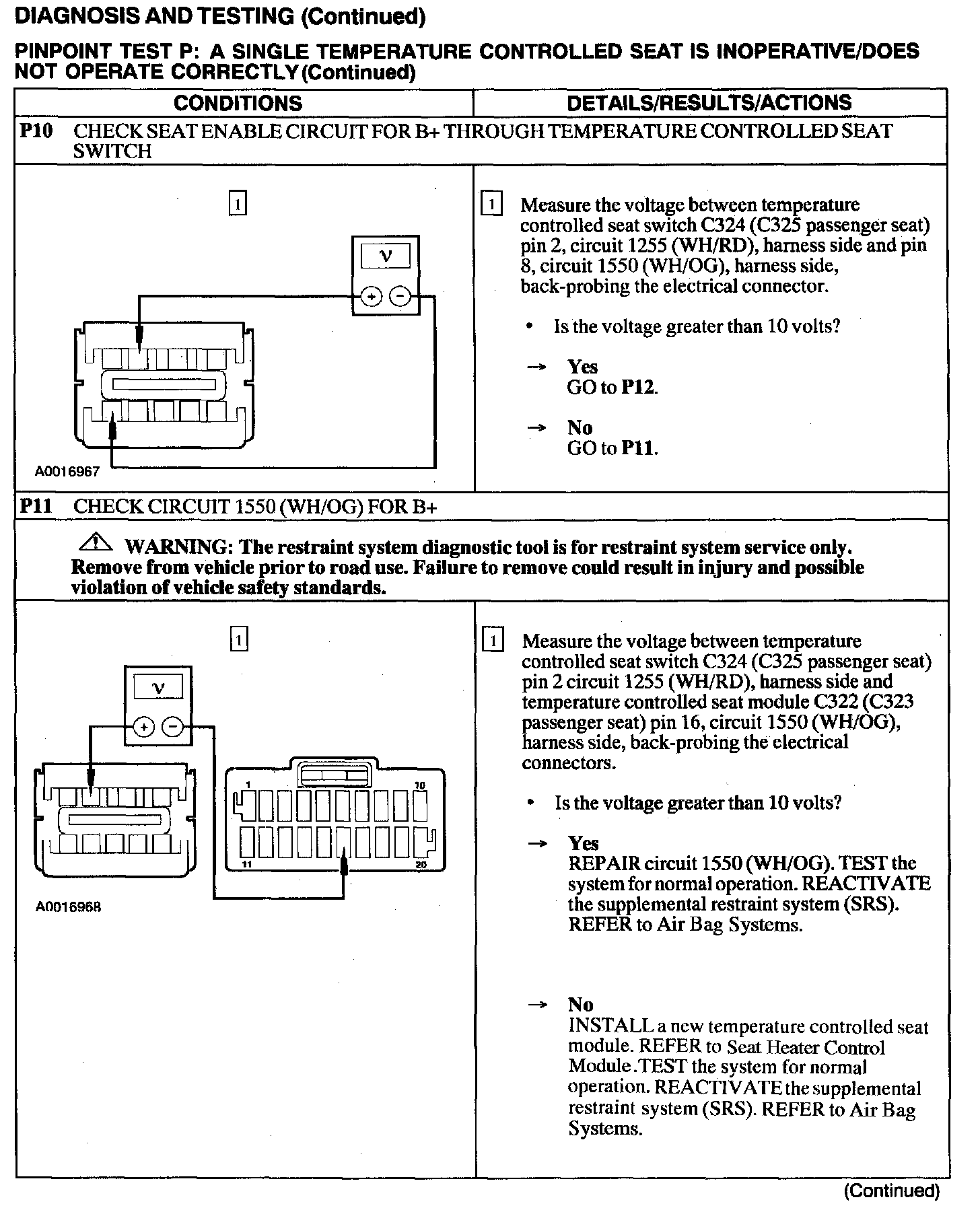 Test P: A Single Temperature Controlled Seat Is Inoperative/Does Not Operate Correctly