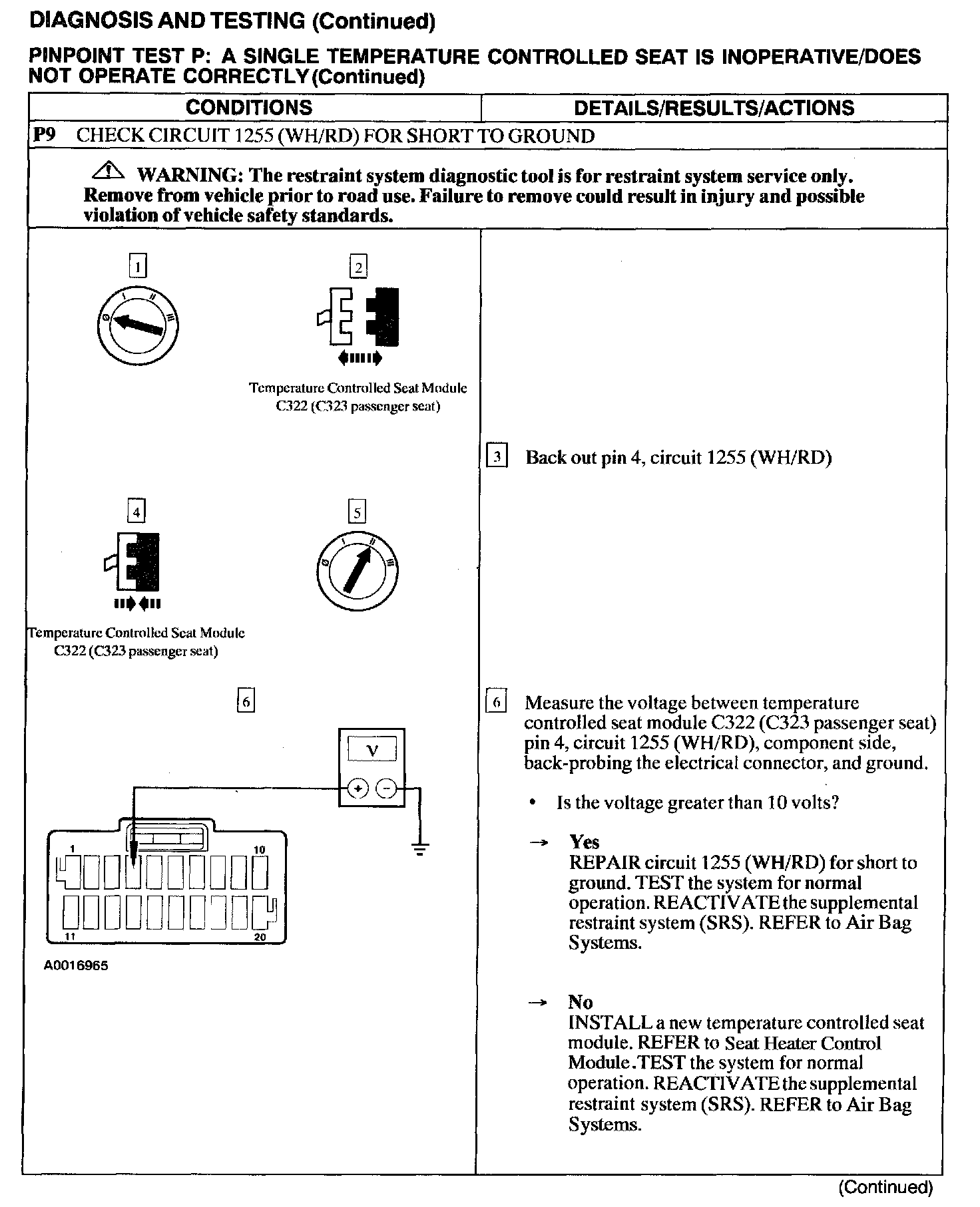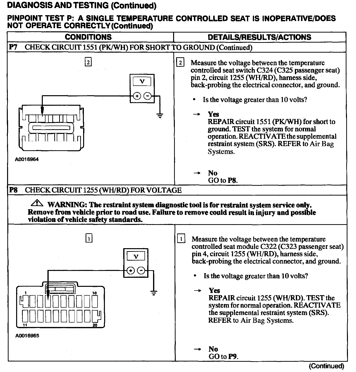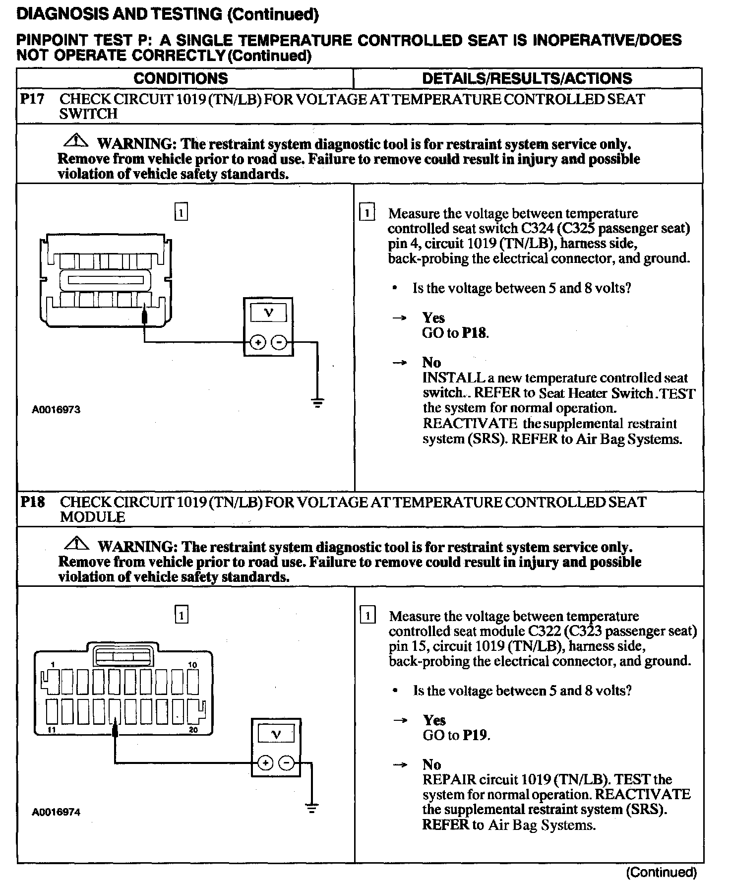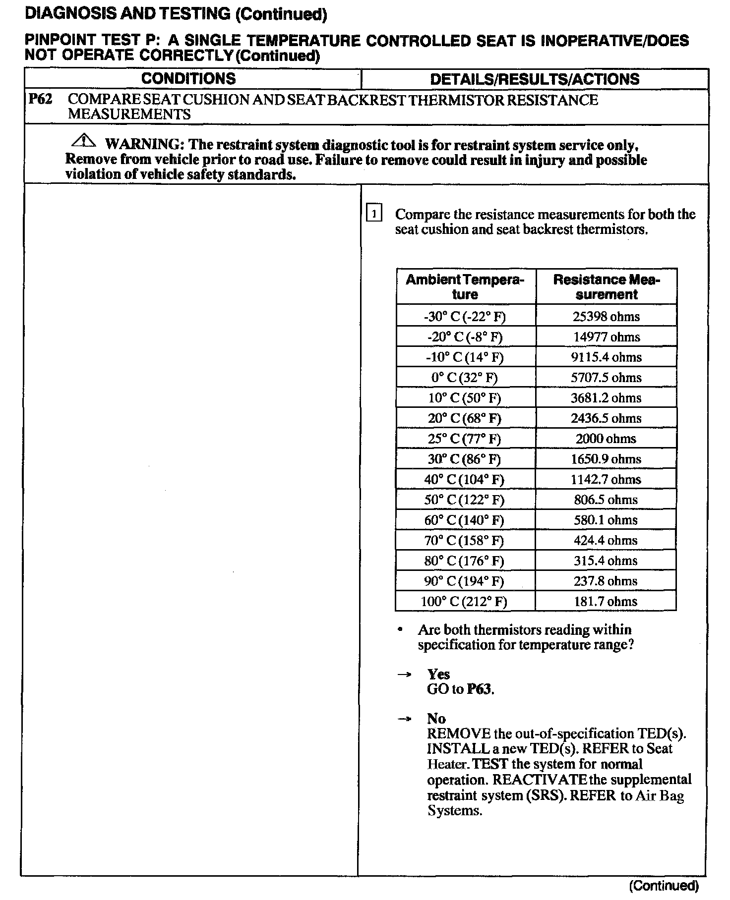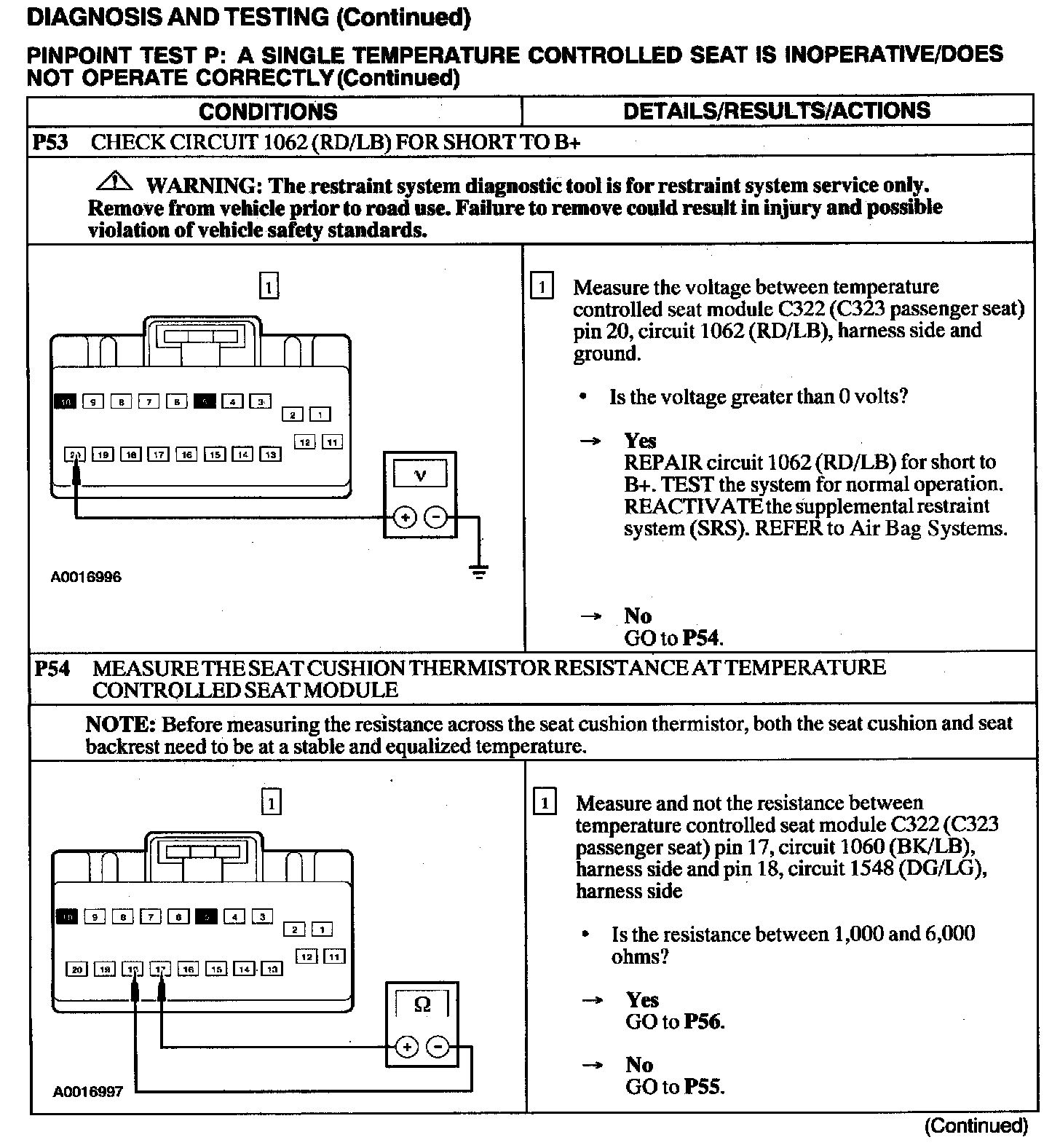 Test P: A Single Temperature Controlled Seat Is Inoperative/Does Not Operate Correctly