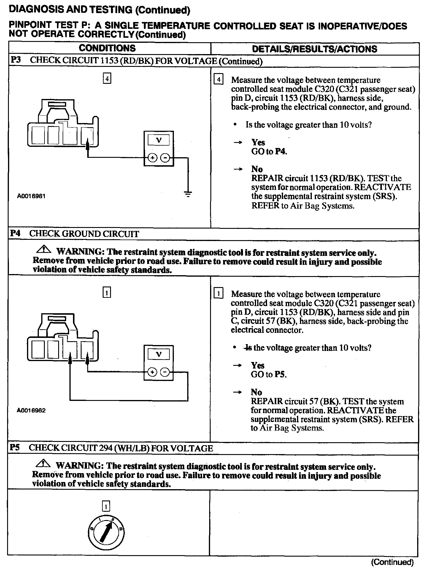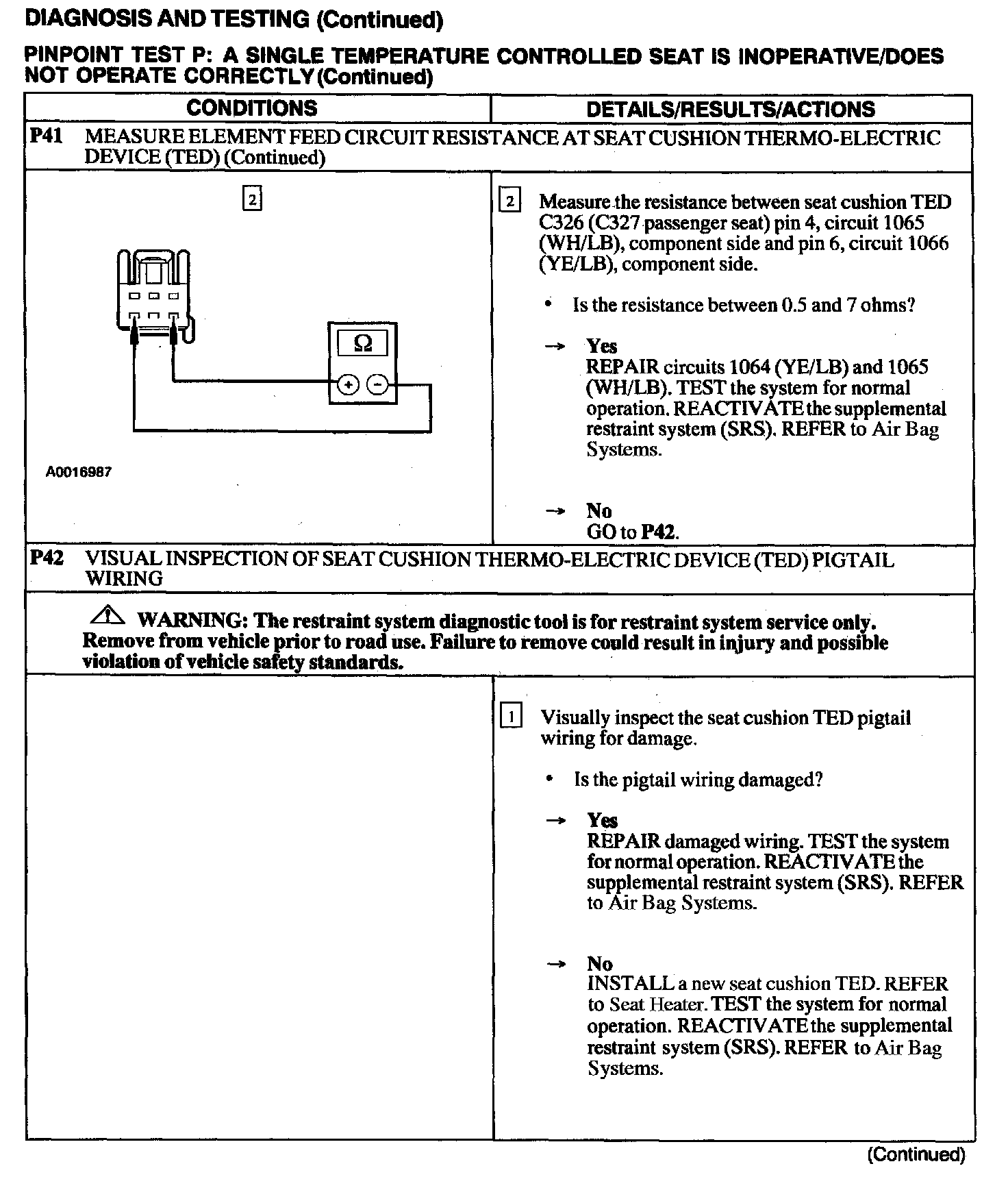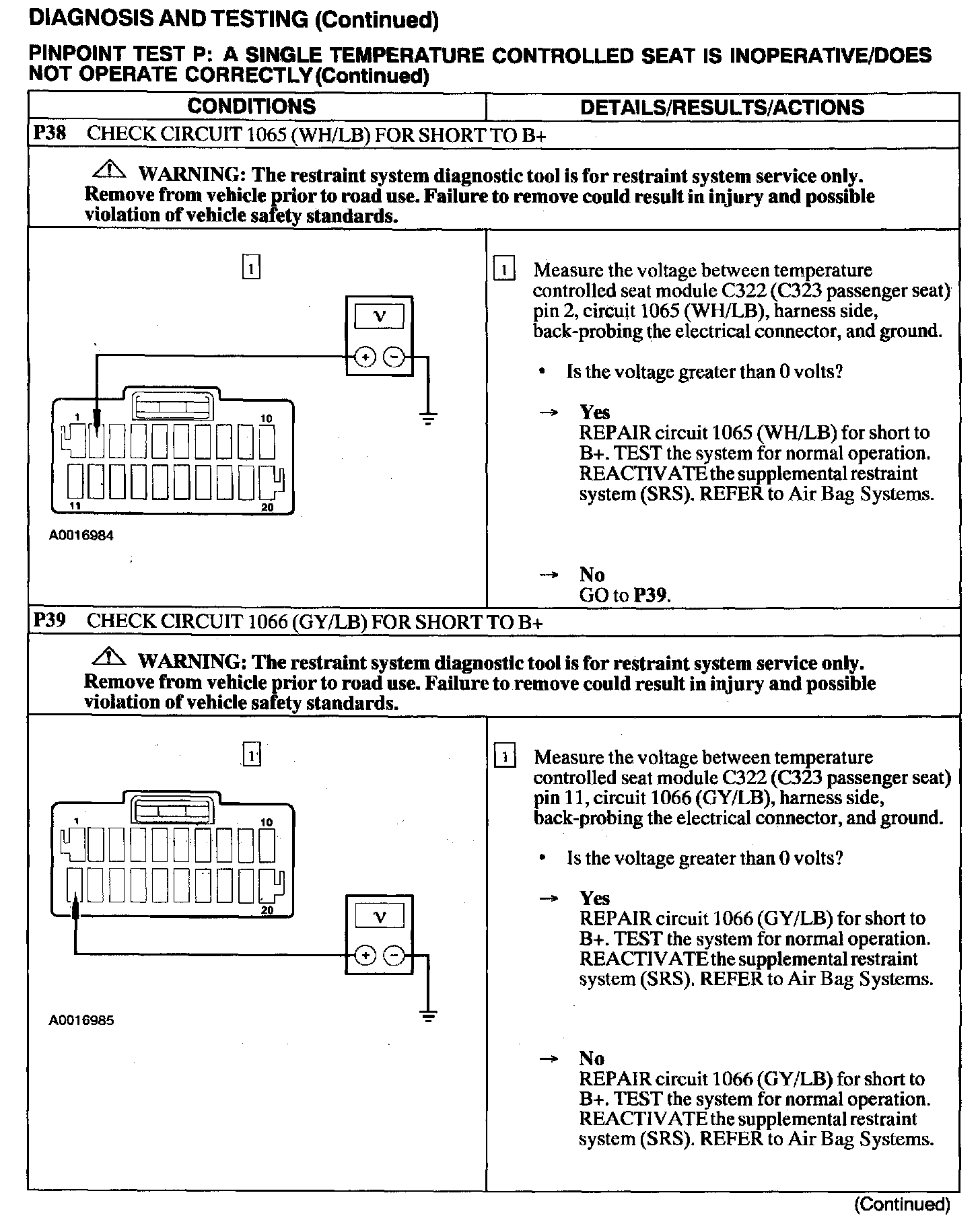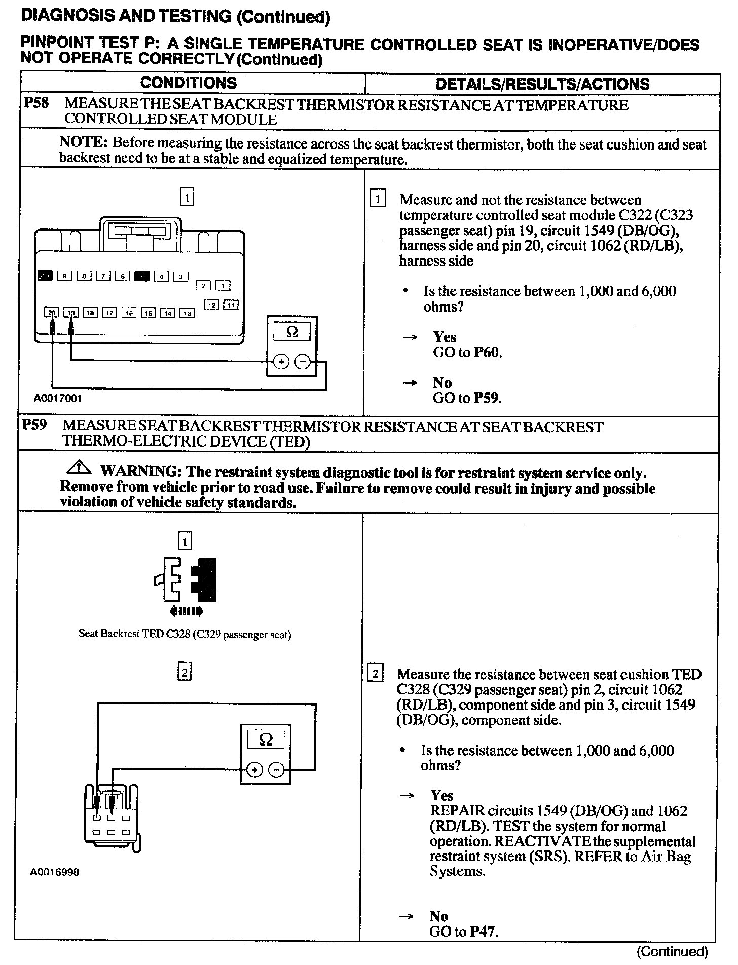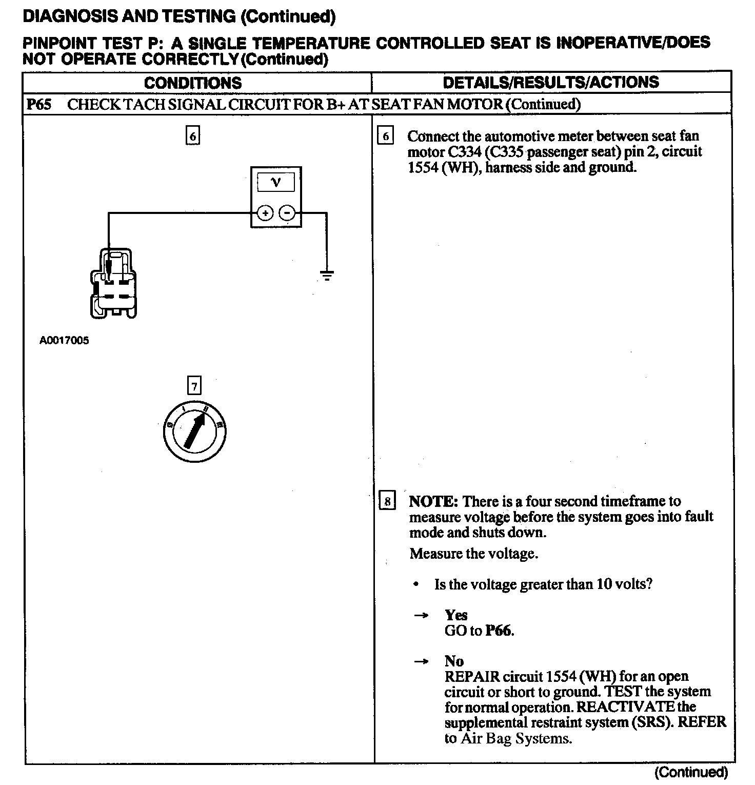 Test P: A Single Temperature Controlled Seat Is Inoperative/Does Not Operate Correctly