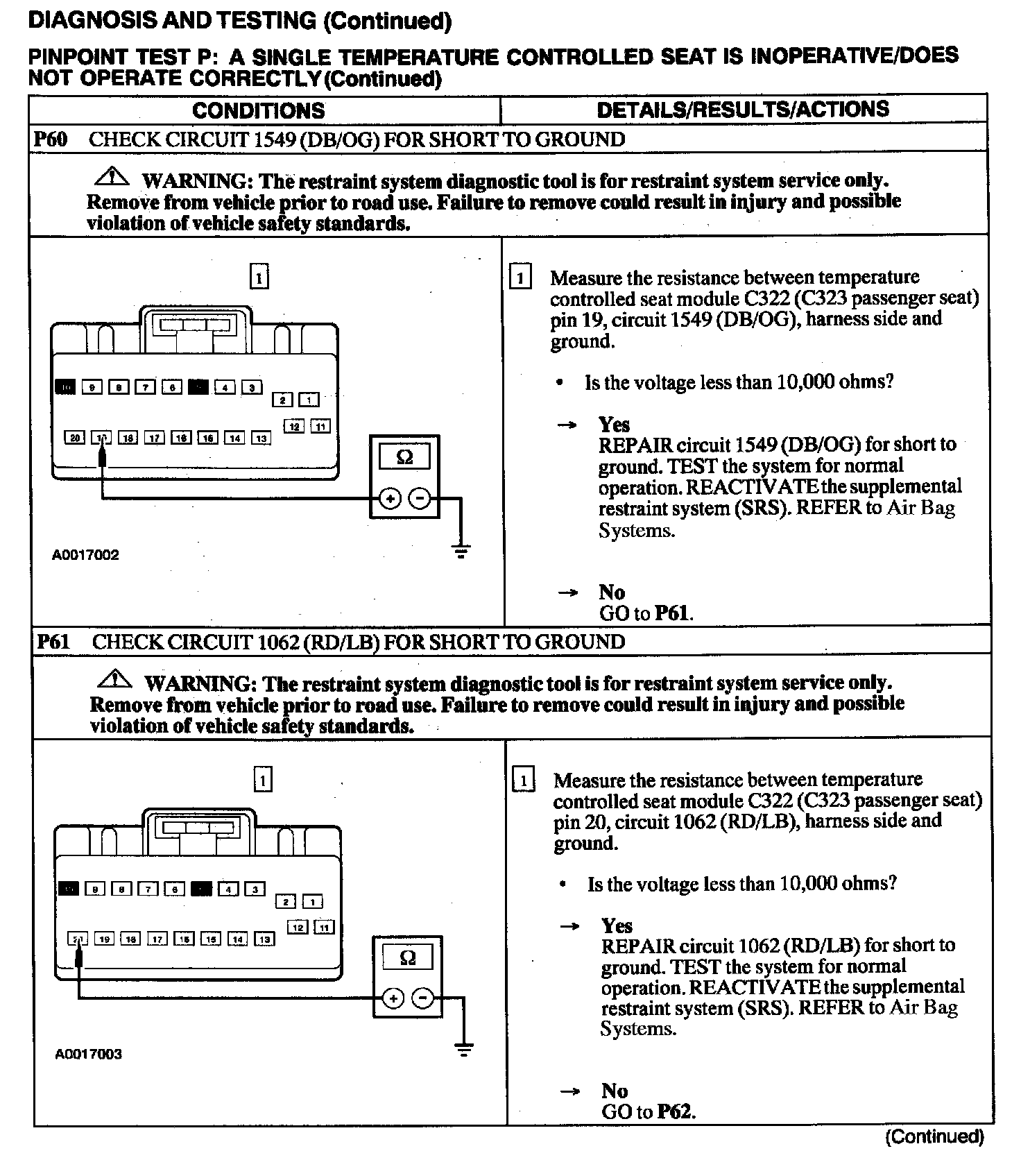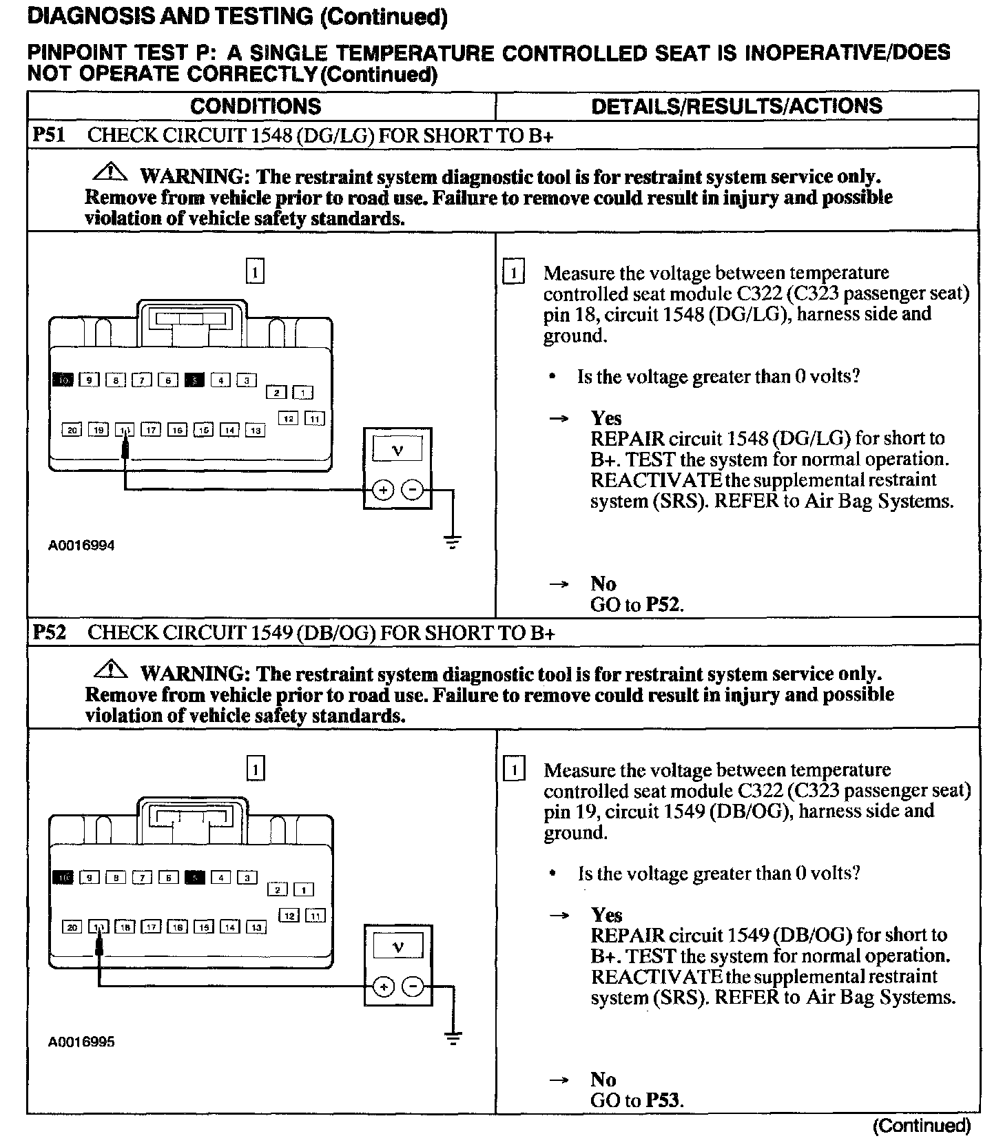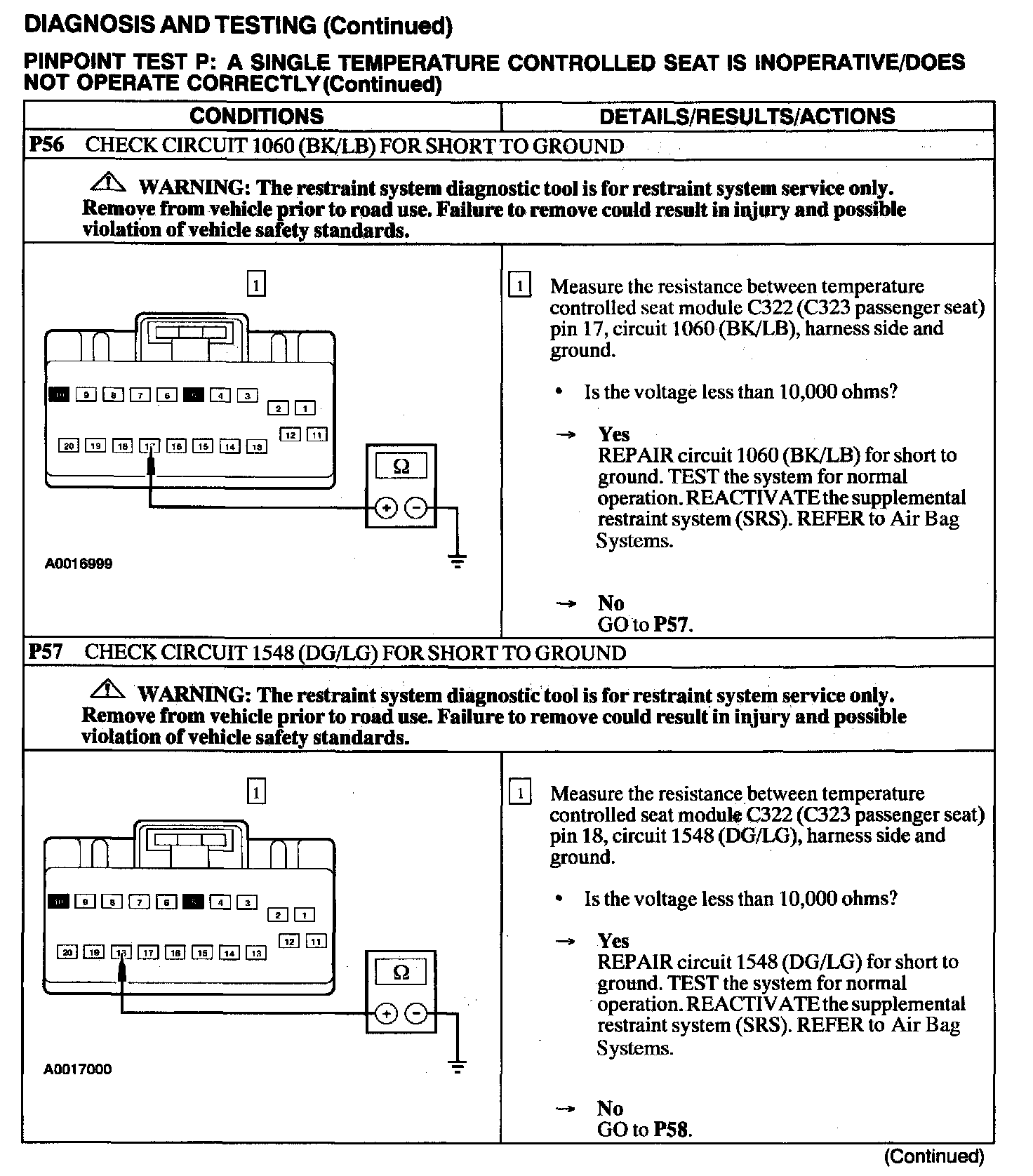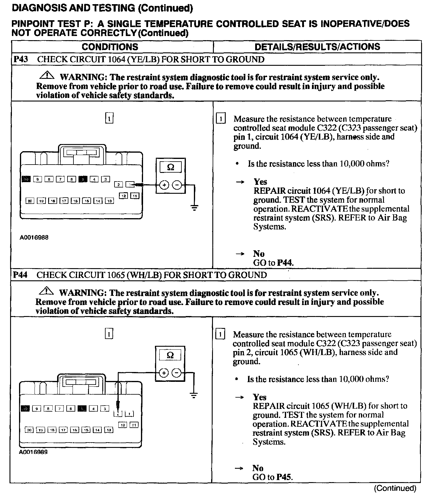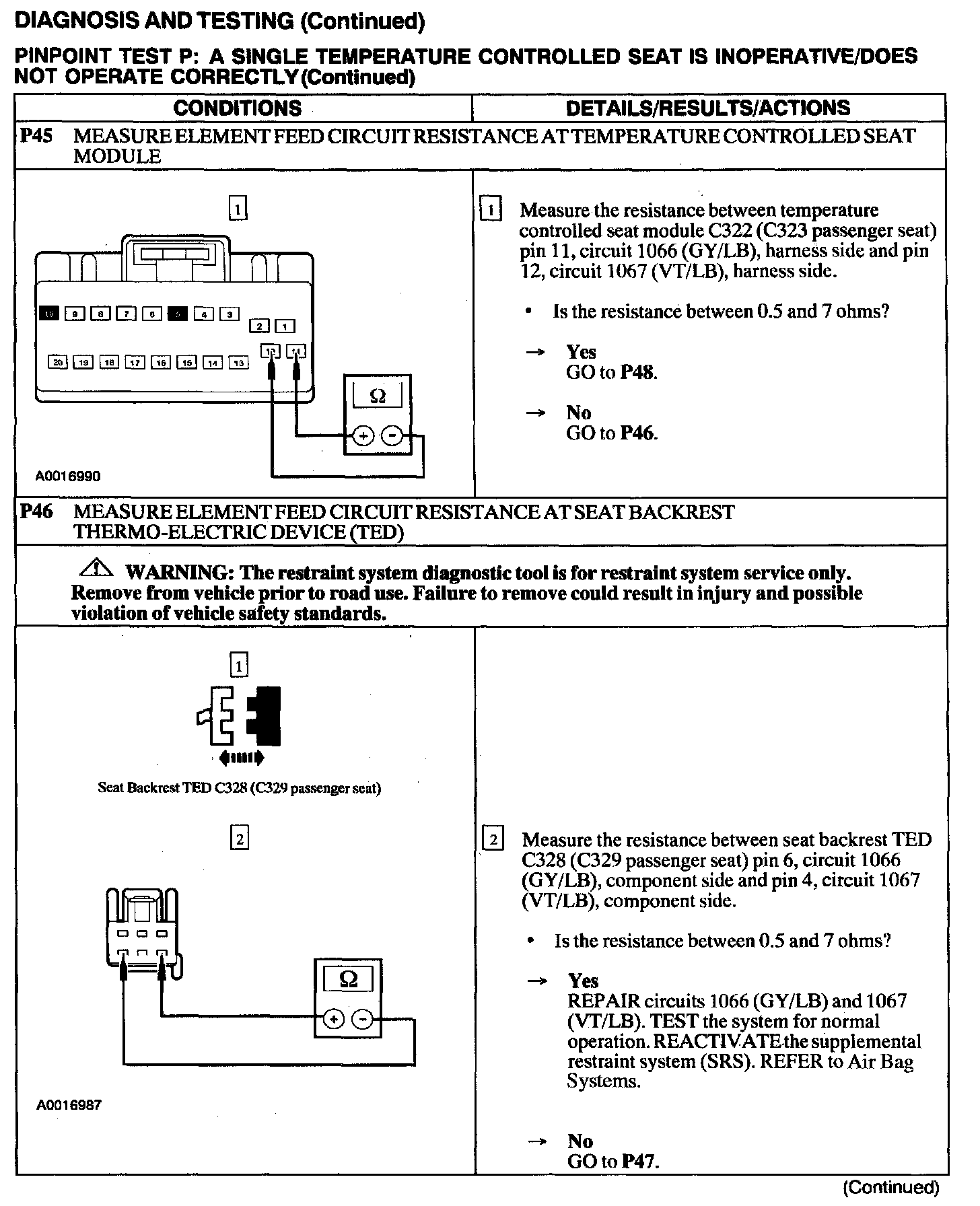 Test P: A Single Temperature Controlled Seat Is Inoperative/Does Not Operate Correctly