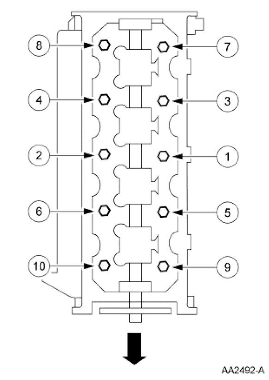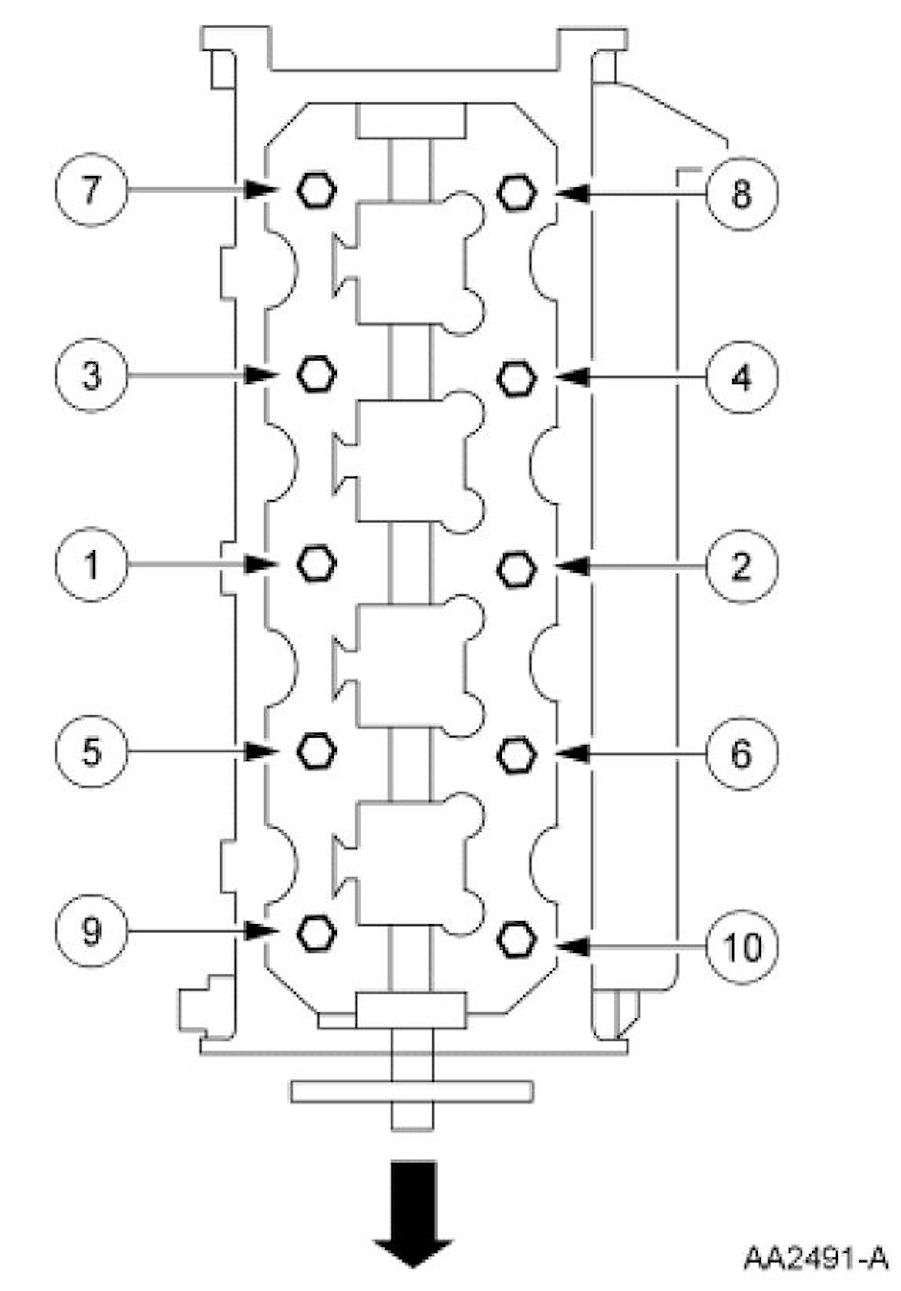 Stage 2: Tighten fasteners 6 and 7 to 48 Nm (35 lb-ft).