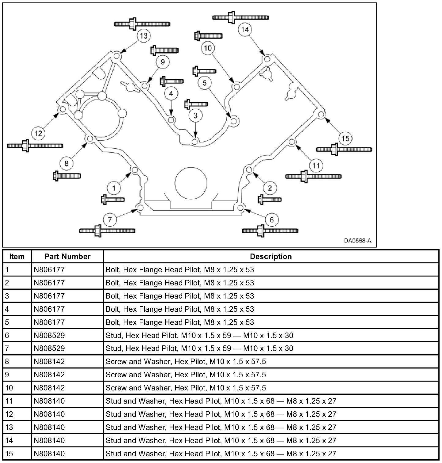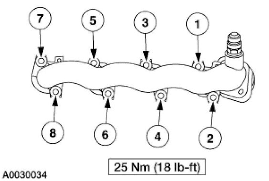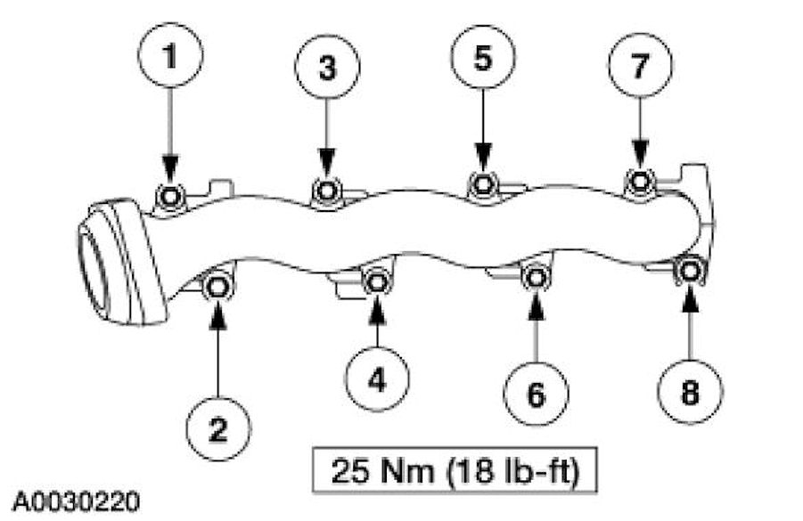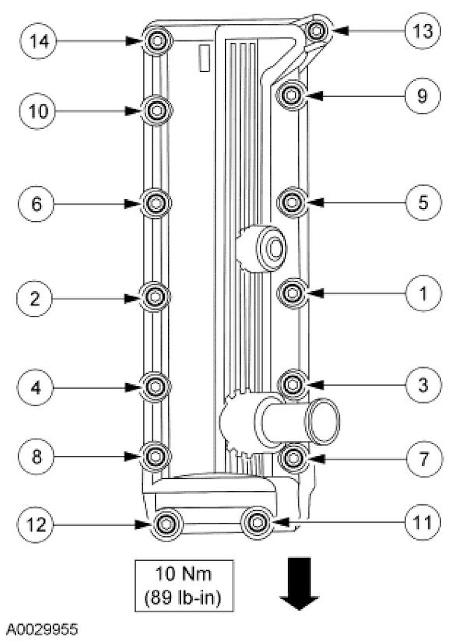 Stage 3: Tighten fasteners 8 through 15 to 48 Nm (35 lb-ft).