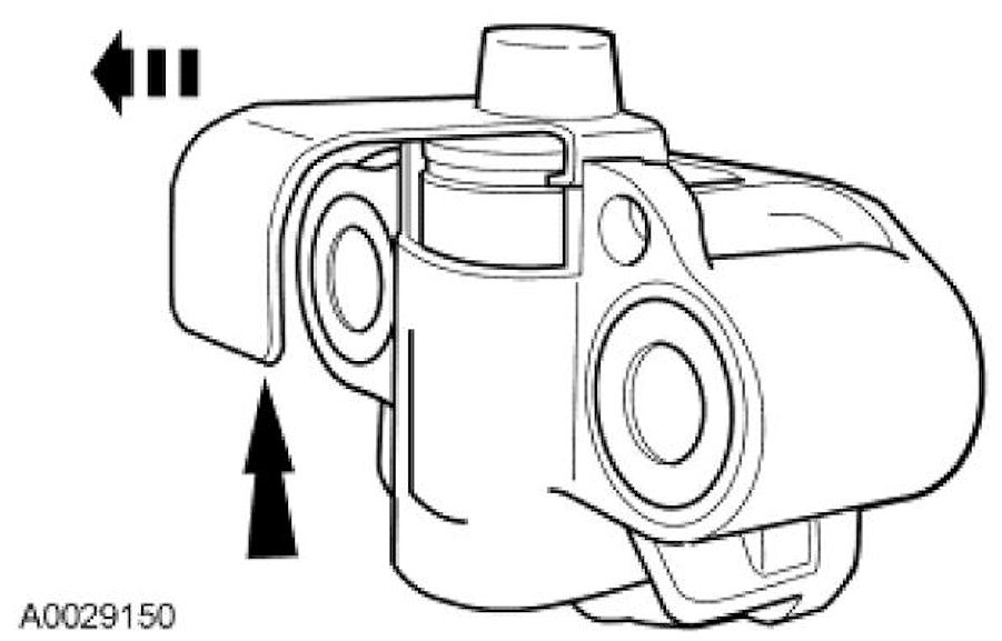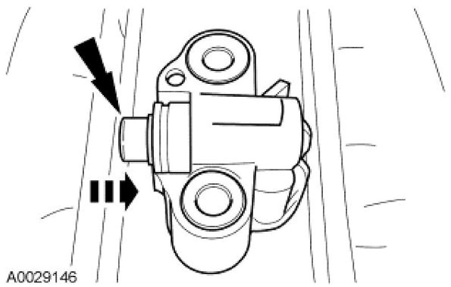 11. Install a retaining clip on the tensioner to hold the plunger in during installation.