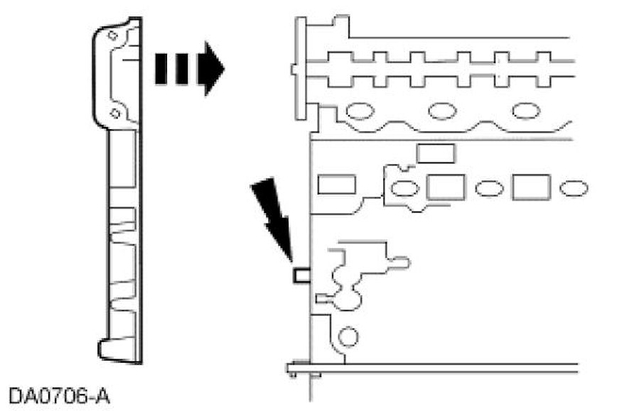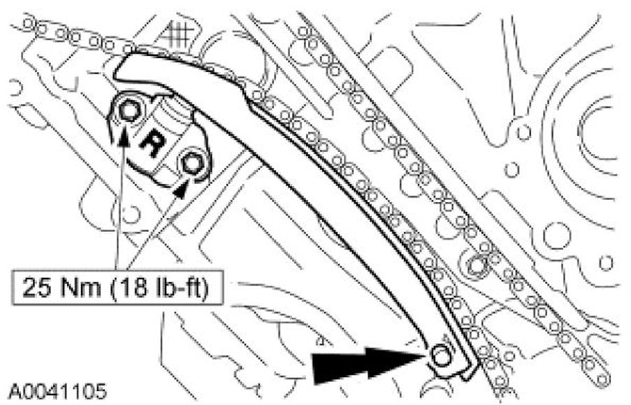 21. NOTE: The LH timing chain tensioner arm has a bump near the dowel hole for identification.