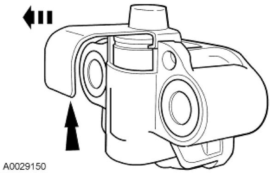 22. Remove the retaining clip from the LH timing chain tensioner.