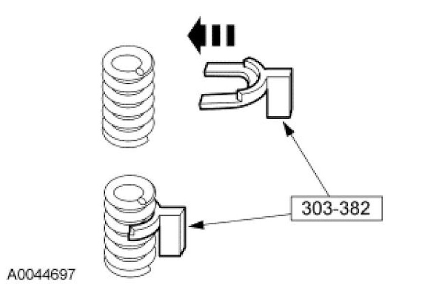 28. Install the special tool between the valve spring coils to prevent valve stem seal damage.