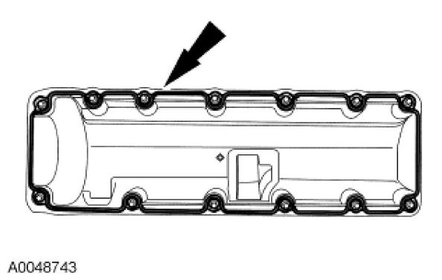 46. Position the LH valve cover and gasket on the cylinder head and install the bolts loosely.