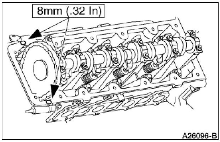 2. Rotate the RH camshaft with the Camshaft Positioning Tool until the timing mark is approximately at 11 o'clock.