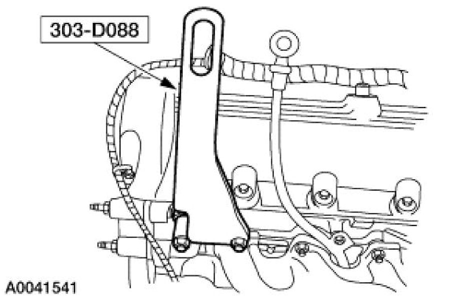 NOTE: The number one piston is at top dead center (TDC) when the stud on the engine block fits into the slot in the handle of the special tool.
