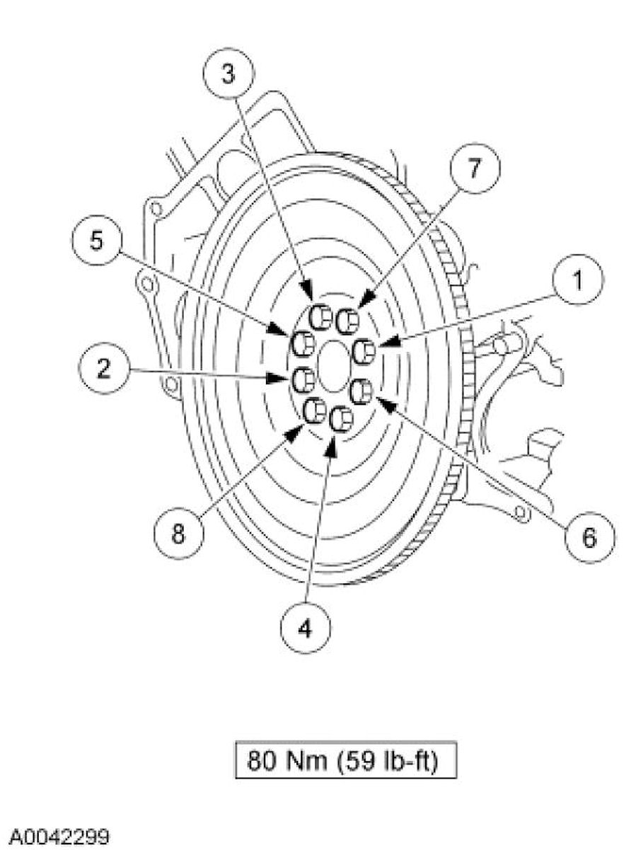 69. Install the flexplate or the flywheel and bolts. Tighten the bolts in the sequence shown.