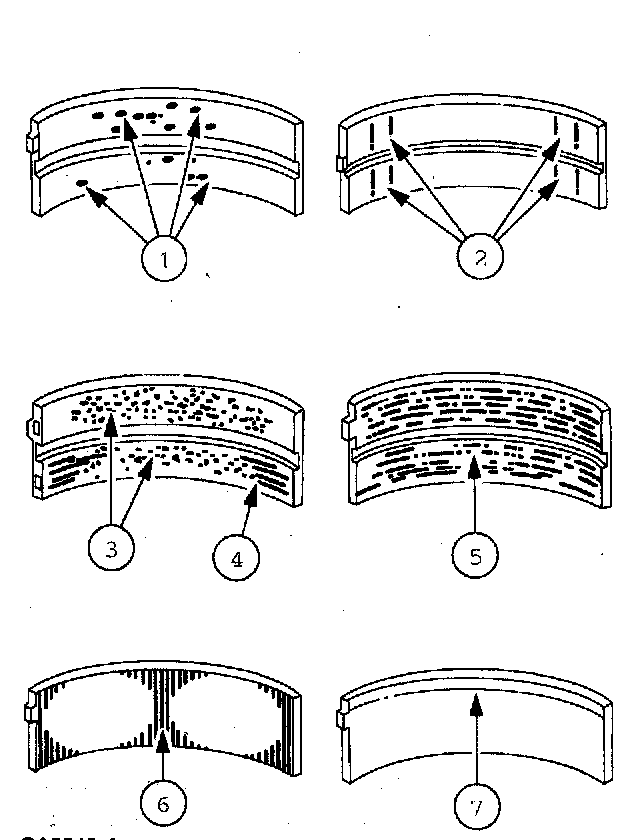 5. Base exposed - poor lubrication.