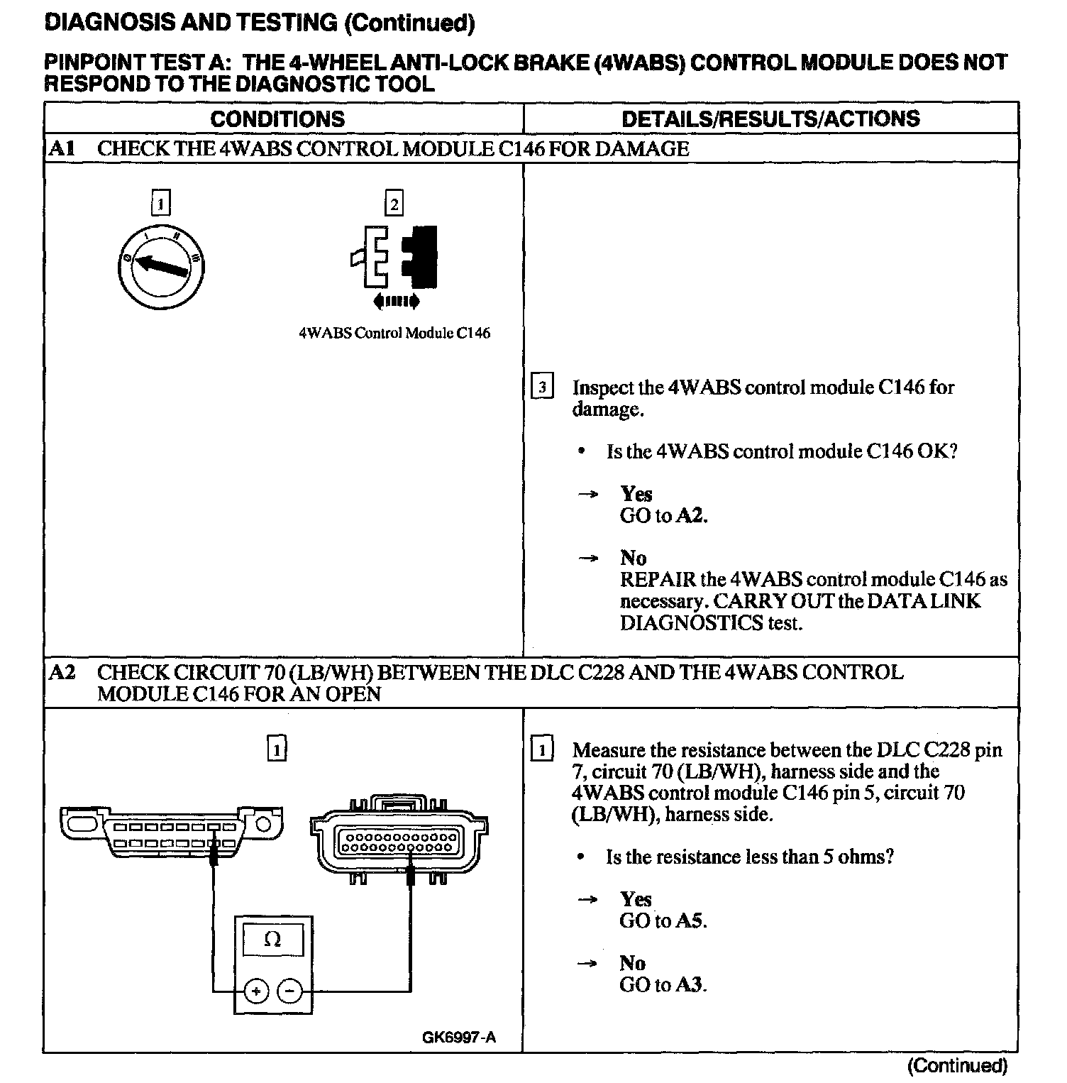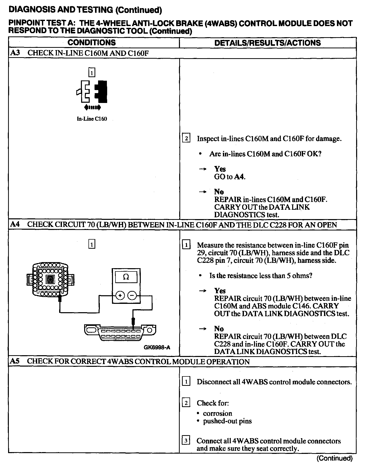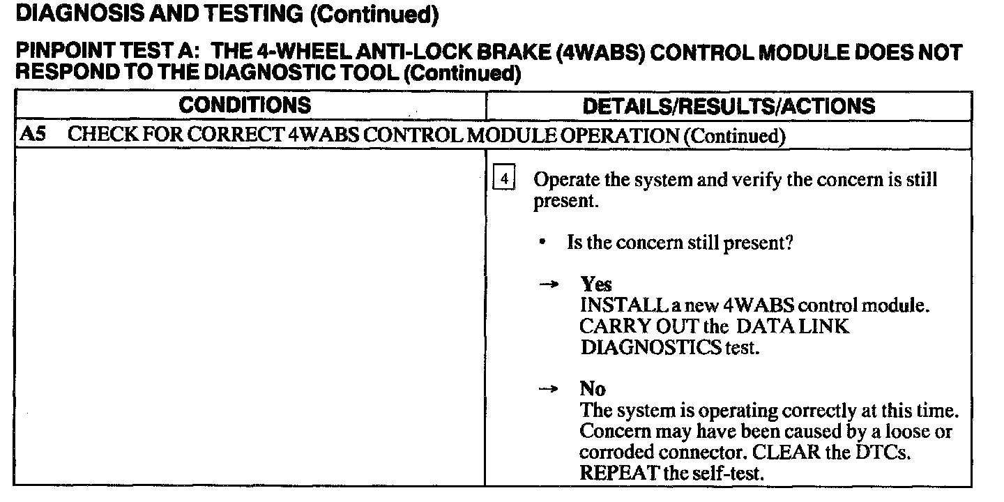 Test A: 4WABS Control Module Does Not Respond to Diagnostic Tool