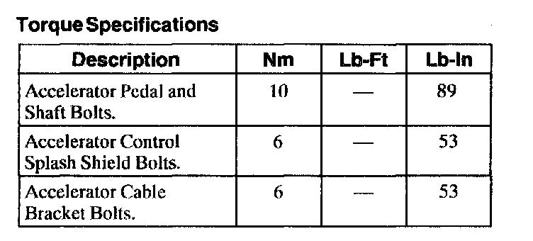 Accelerator Pedal: Specifications