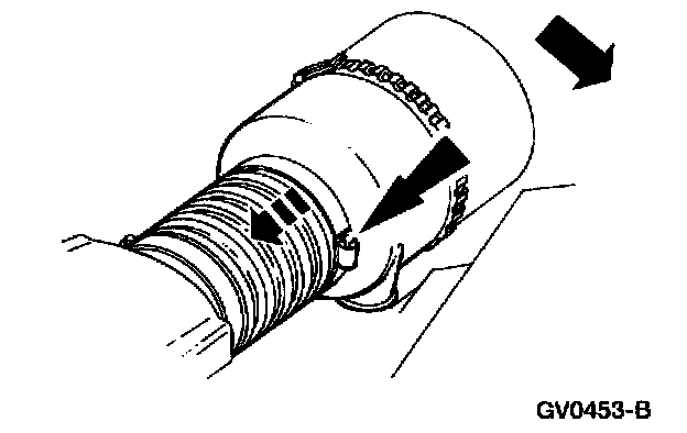 CAUTION: The grommet used to seal the air cleaner housing at the extension must be fully seated. Failure to do so will result in unmetered air entering the engine.