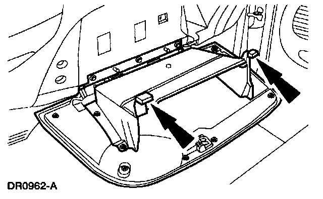 3. Push in the two glove compartment door tabs and position downward.
