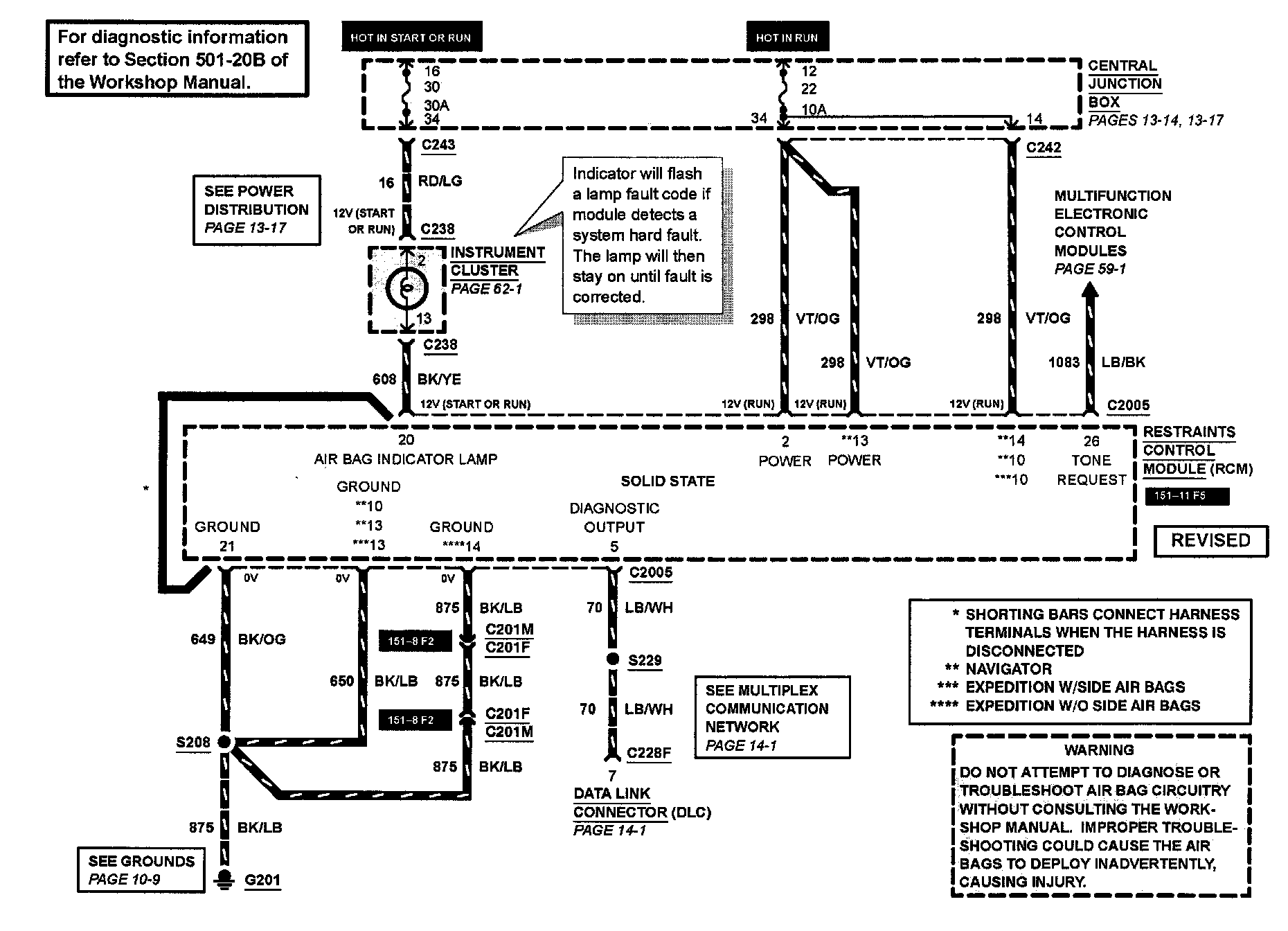 The 2001 and 2002 Expedition/Navigator restraint system does not list an air bag relay.