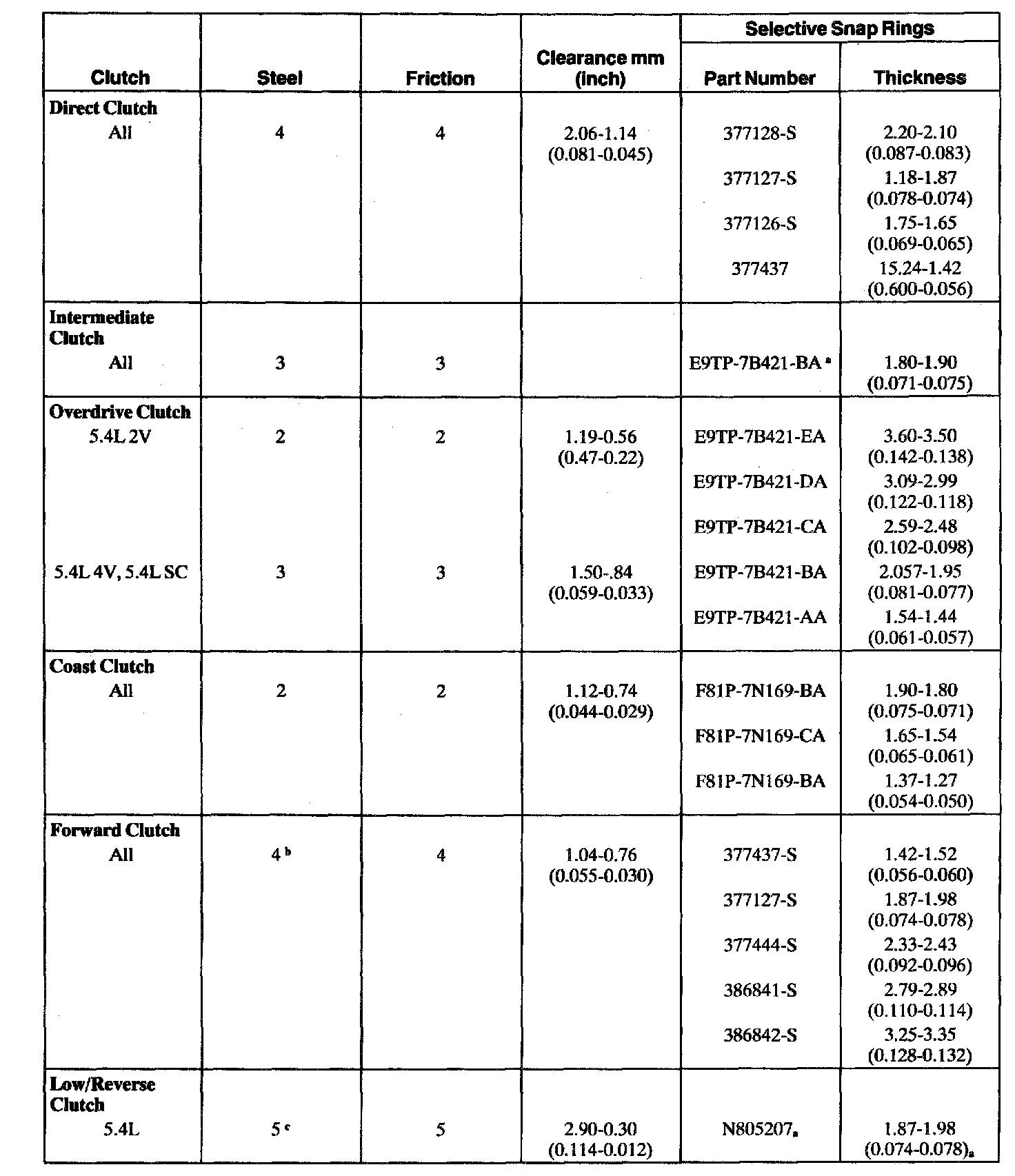 Clutch Plate Usage and Clearance Specificationa. A non-selective snap ring.