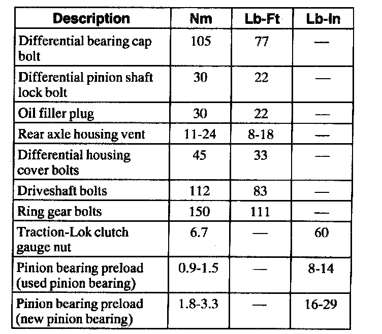 Torque Specifications