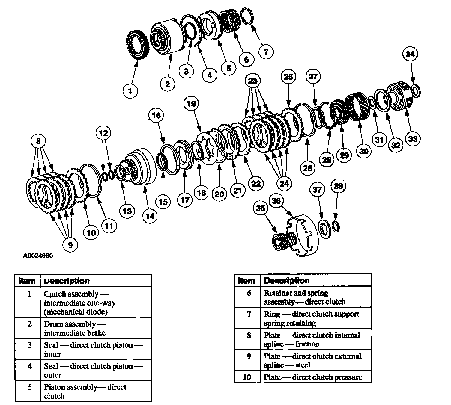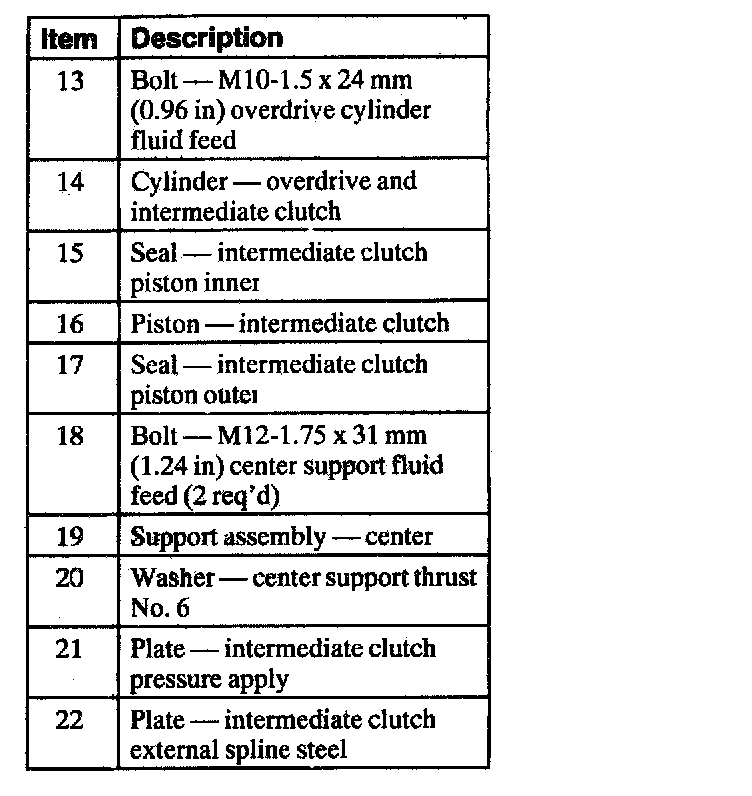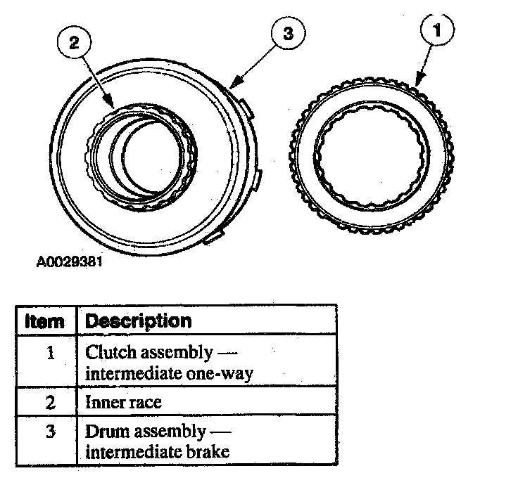 In second gear, the intermediate clutch assembly holds the forward/reverse sun gems. lit is applied, along with the intermediate one-way clutch, to hold the intermediate brake drum, input shell and forward/reverse sun gear. In higher gears, the one-way clutch overruns.