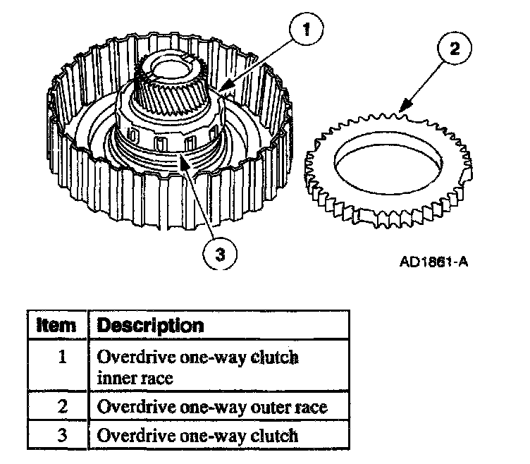 When tightened counterclockwise, the overdrive one-way clutch engages and acts as a wedge-to lock the sun gear and the ring gear together. During coast' the overdrive one-way clutch enables the ring gear to overrun or spin at a faster ratio than the sun gear.