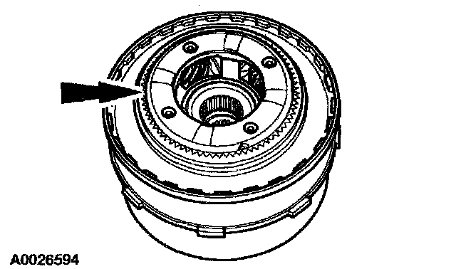 - If the clearance is not to specification, install the correct selective overdrive clutch pressure plate retainer snap ring and recheck the clearance.