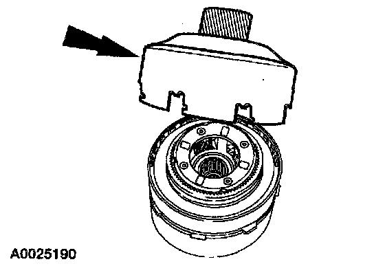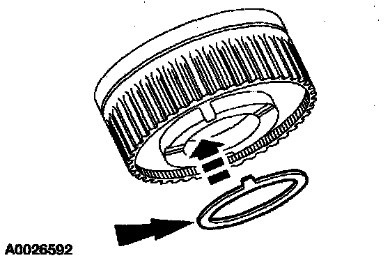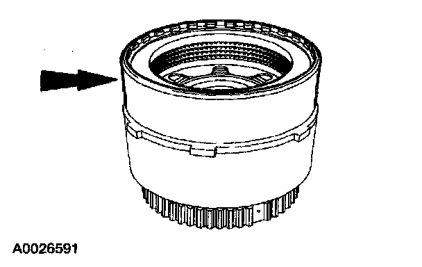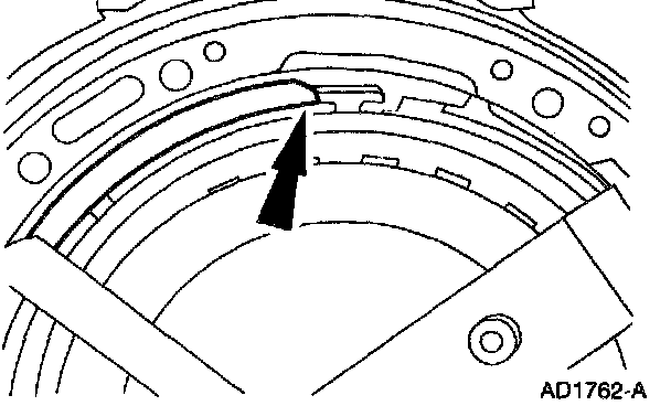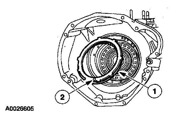 Install the intermediate/overdrive cylinder retaining ring over the intermediate/overdrive cylinder with the ring opening in the 6 o'clock position to allow for the correct fluid drainback.