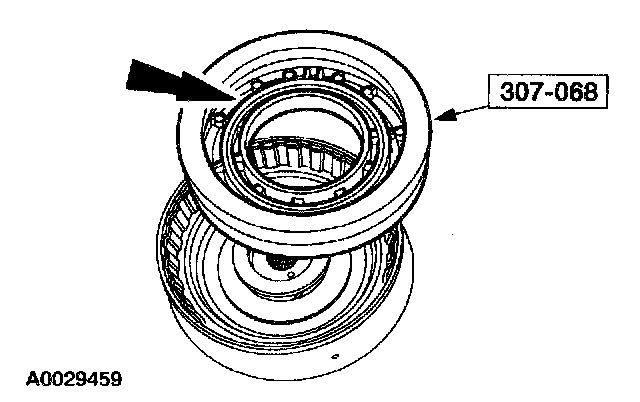 6. CAUTION: To ensure durability, the notch between the spring fingers must be positioned so that both ends of the forward clutch piston apply ring are visible.