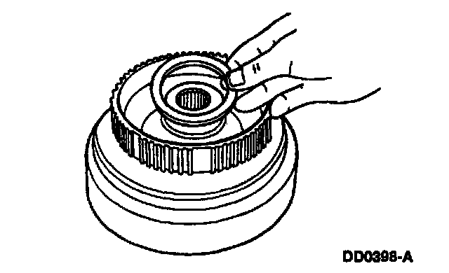 7. Install the forward clutch piston return spring retaining ring. Make sure it is correctly seated in the groove.