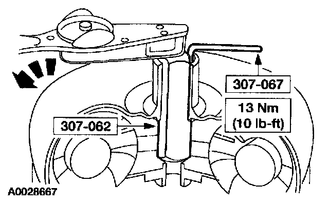 3. Using torque wrench, turn the special tool counterclockwise while holding the special tool stationary.