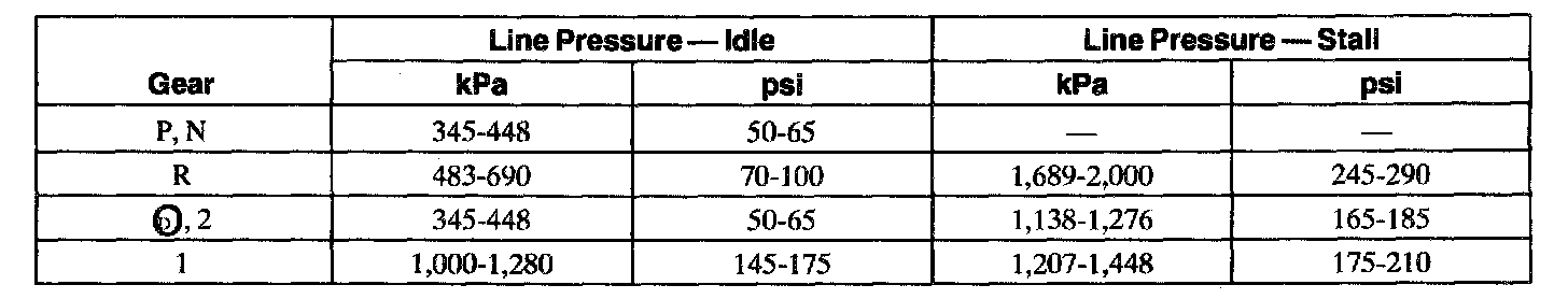 2. Start the engine and check the line pressures. Refer to the Line Pressure Chart to determine if the line pressure is within specification.