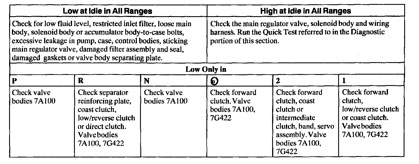 SPECIAL TESTING PROCEDURESThe special tests are designed to aid the technician in diagnosing the hydraulic and mechanical portions of the transmission.