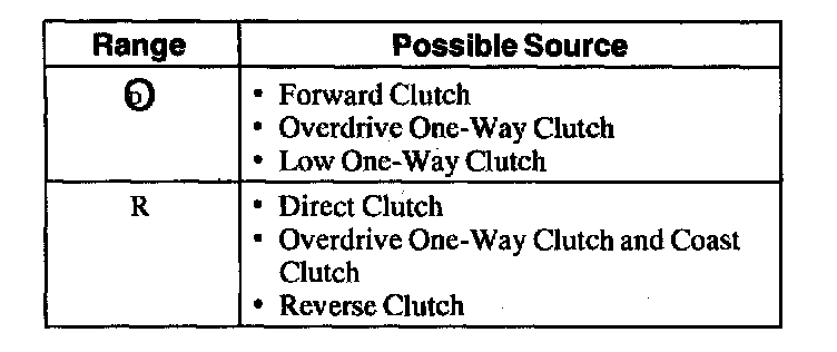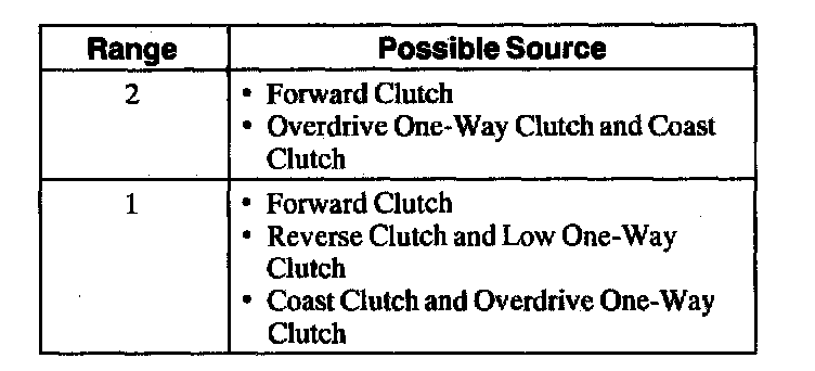 Example: When the transmission manual selector lever is in a forward gear range (0, 2, 1), a no-drive condition may be caused by an inoperative forward clutch.