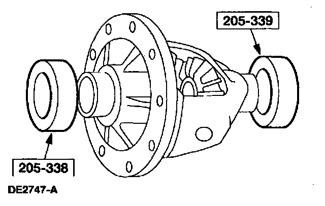 45. CAUTION: Never attempt to cave the differential bearing shim in place. Permanent damage to the machined axle housing surfaces can occur.