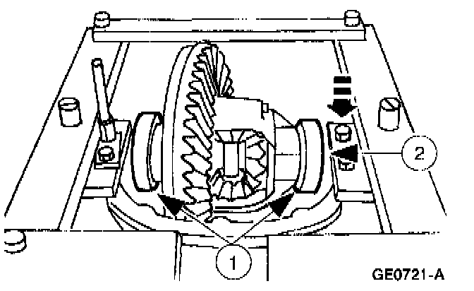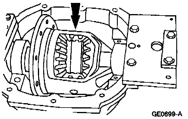 2 Lower the differential case assembly in place between the differential bearing shims.
