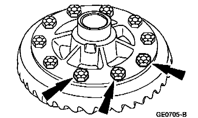 1 Position three bolts to align the holes in the ring gear and the differential case.