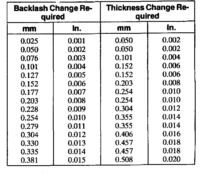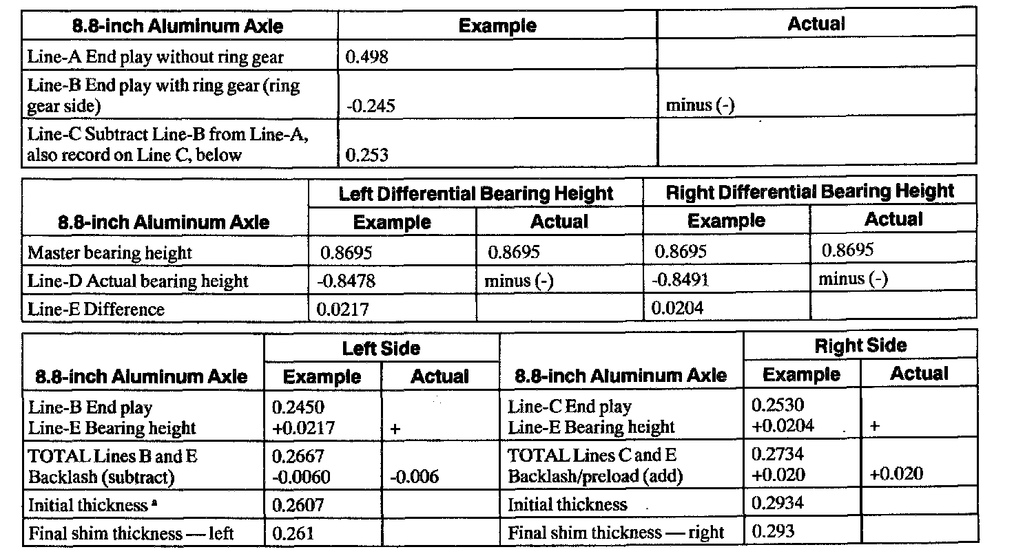 Differential Bearing Shim Selection Chart