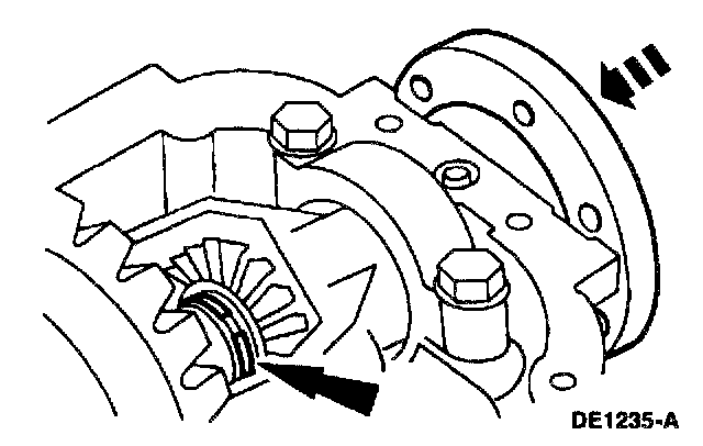 9. NOTE: Use only flat, clean drive pinion bearing adjustment shims.