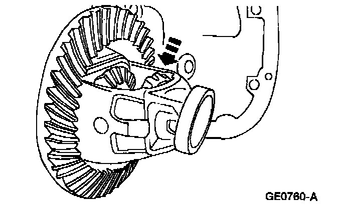 ^ If runout exceeds the specification, the ring gear is true and the condition is due to differential case/differential bearing damage.