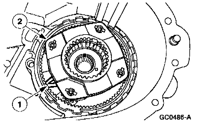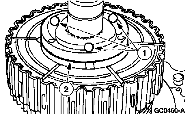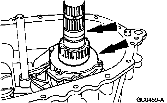 25. CAUTION: When removing or installing the clutch pack assembly, do not separate the clutch pack assembly. Keep tension on the clutch pack upon removal. Set the clutch pack assembly on the bench in the same position as located in the transfer case. The thrust washer in the lower clutch pack uses tabs to hold it in place. If the thrust washer is not in place, a transfer case clearance problem can occur.