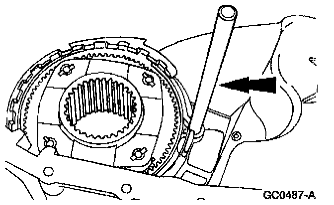 32. Remove the reduction shift fork assembly and the reduction hub as an assembly.
