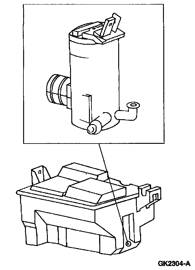 REMOVAL1. Disconnect the jack handle from the windshield washer reservoir.