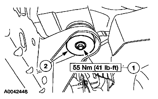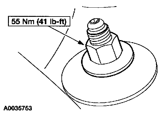1. From inside the engine compartment, remove the body mount insulator nut and backing plate and discard the nut.