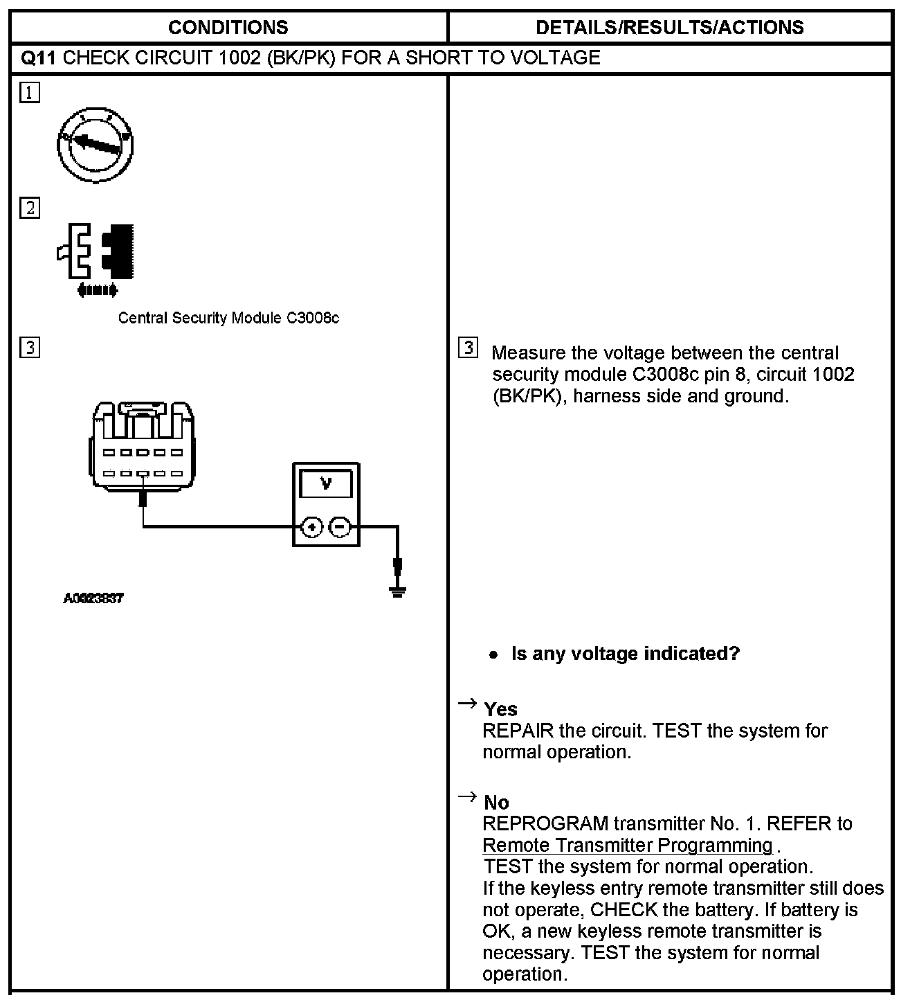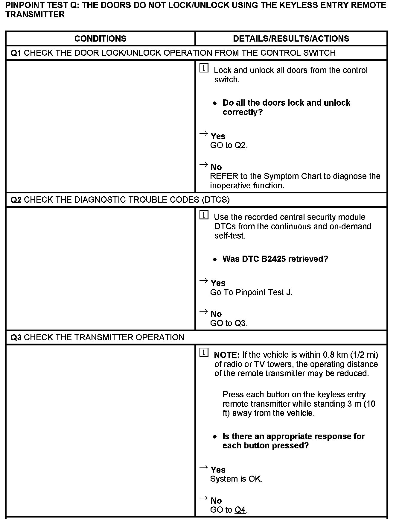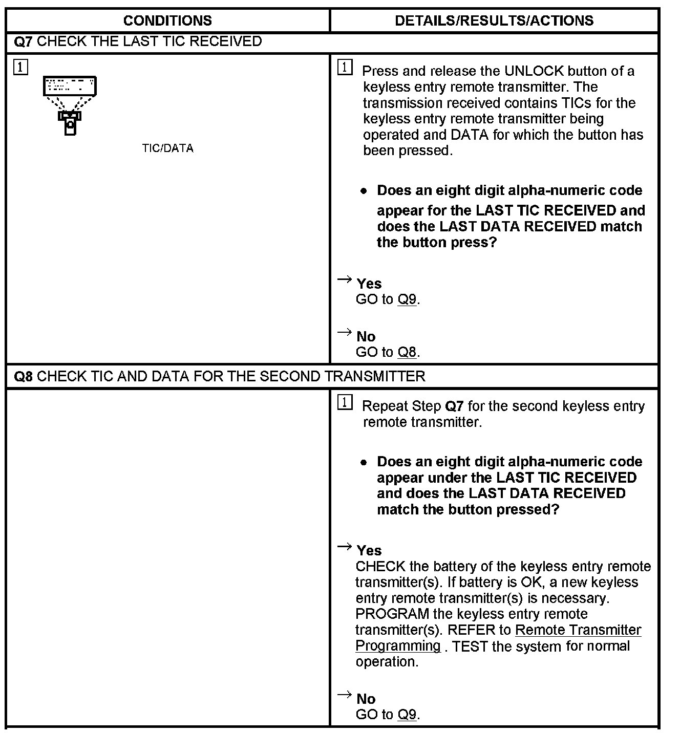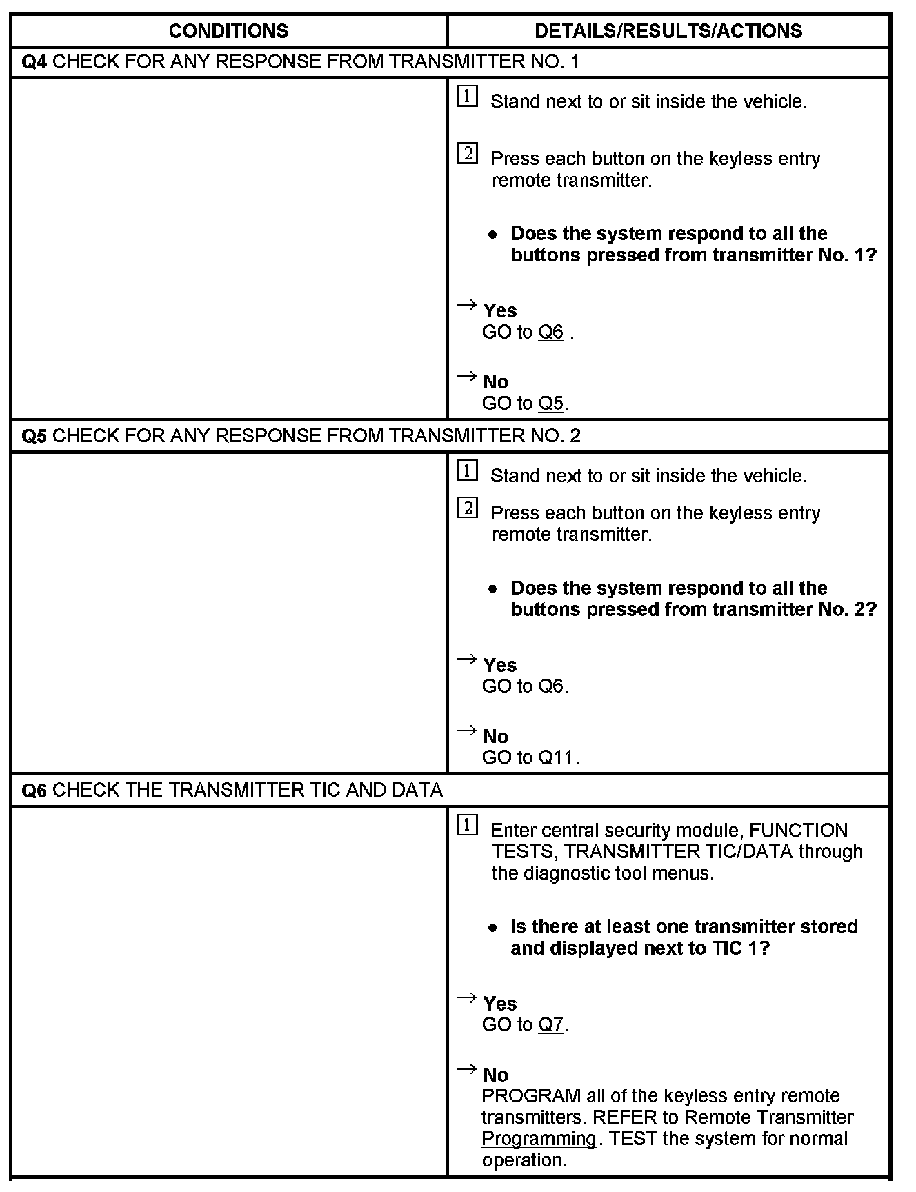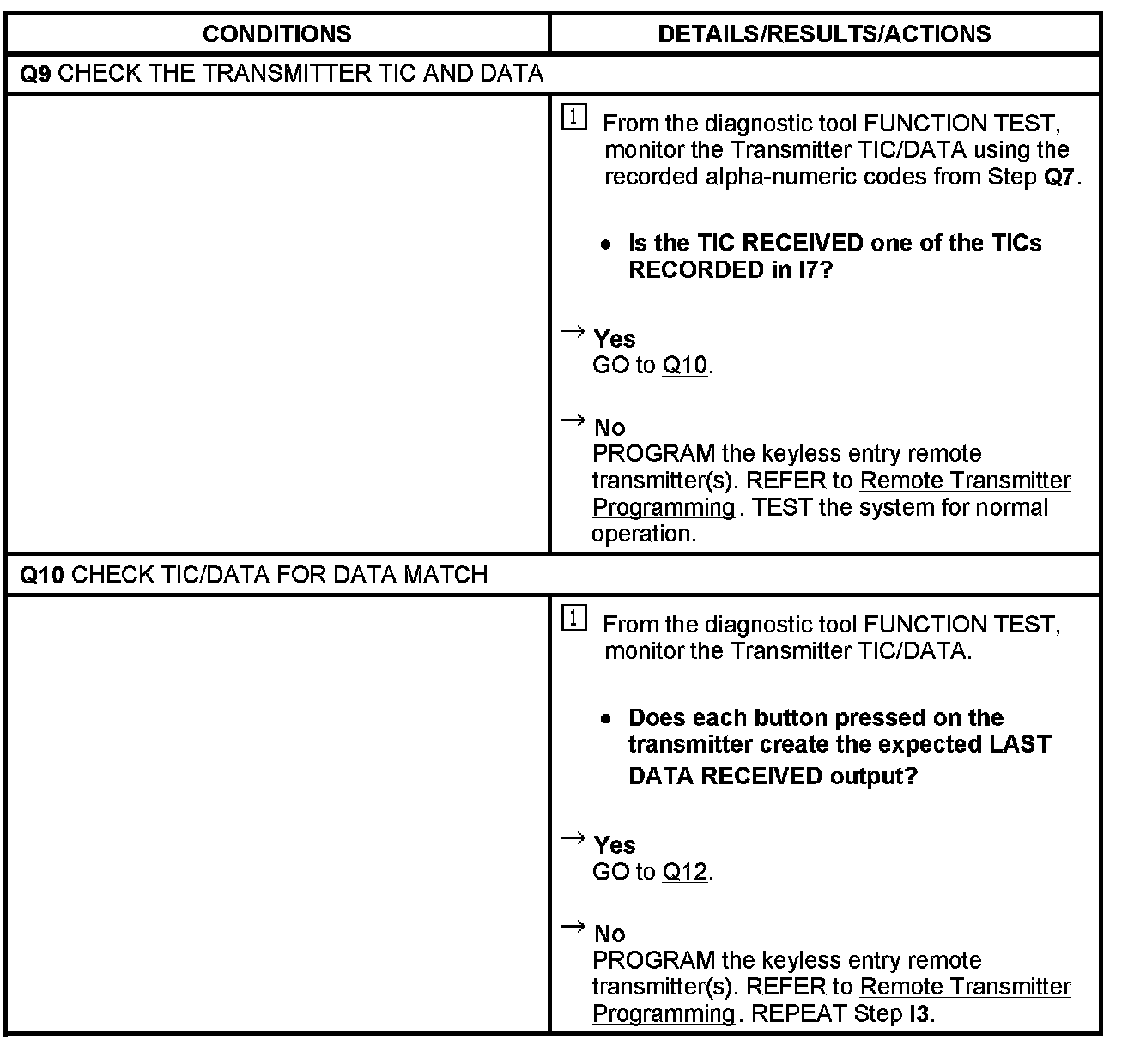 PINPOINT TEST Q: THE DOORS DO NOT LOCK/UNLOCK USING THE KEYLESS ENTRY REMOTE TRANSMITTER