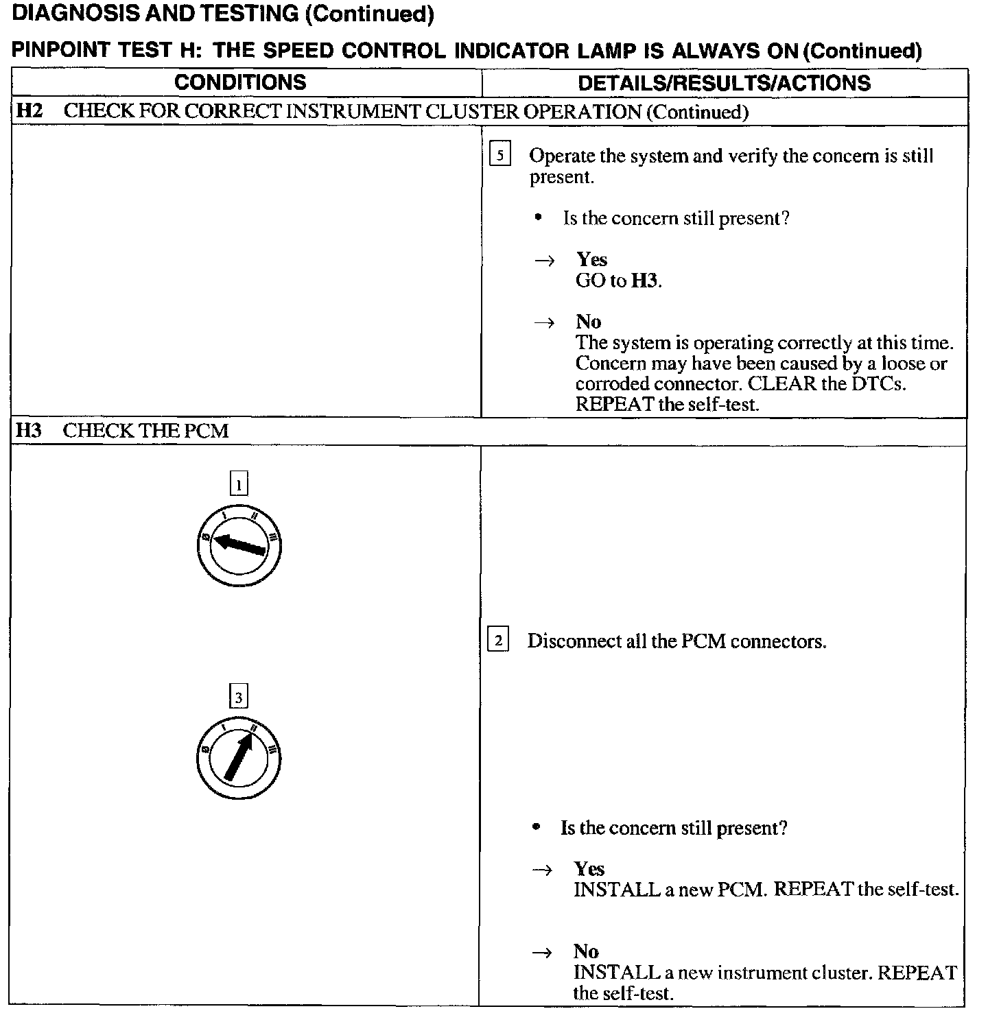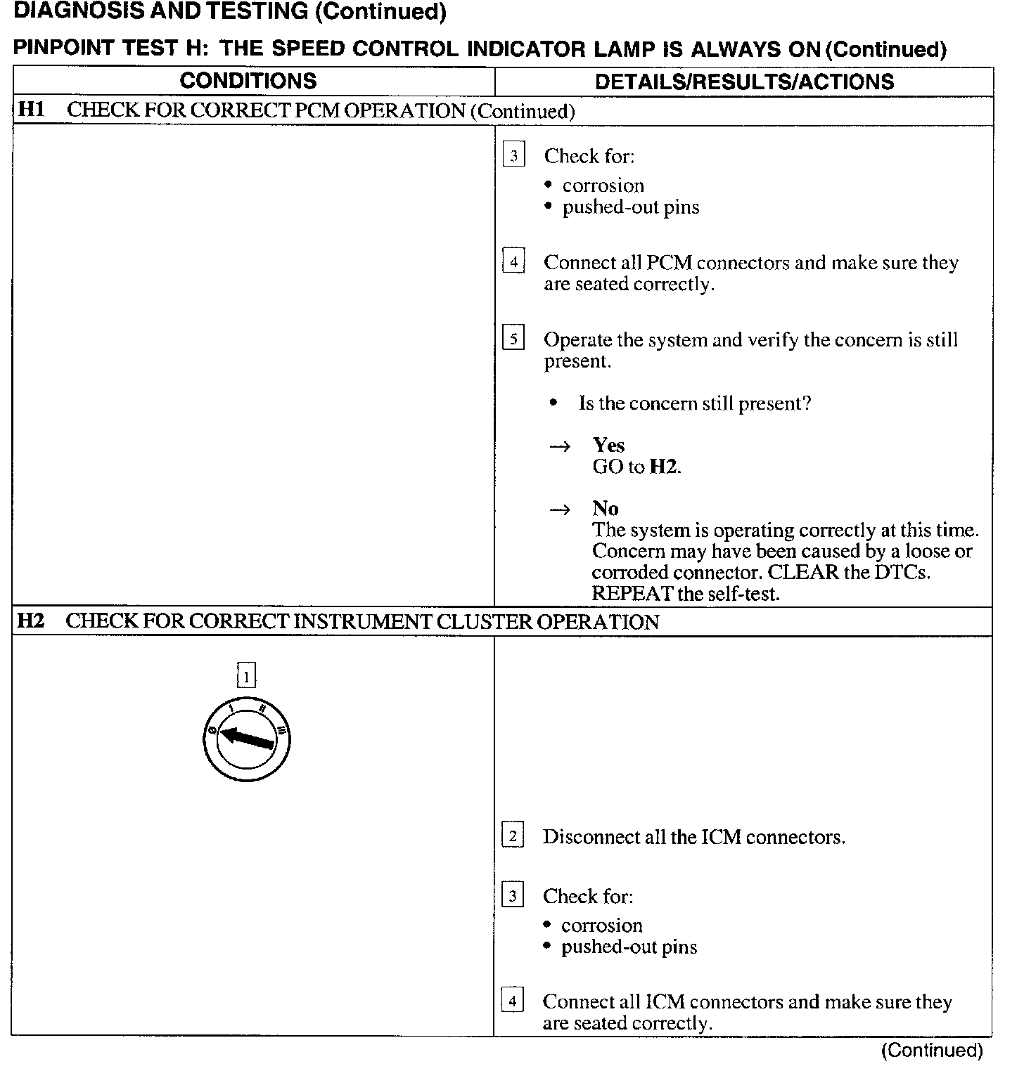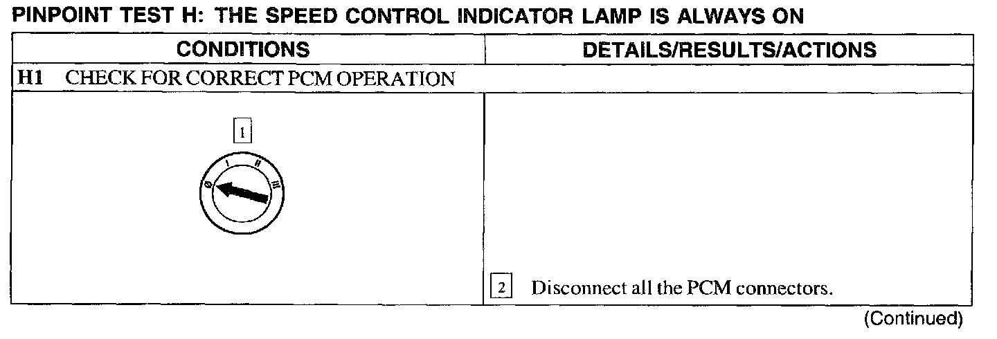 Test H: Speed Control Indicator Lamp Is Always On
