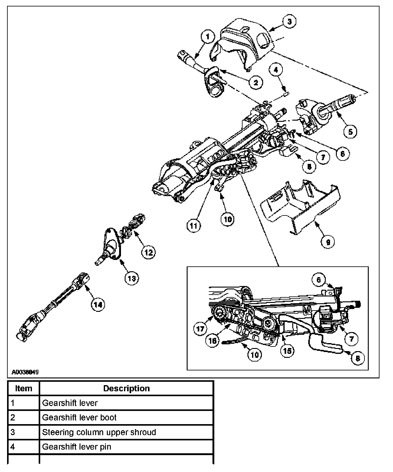 The shift interlock actuator is not serviceable. If service of the actuator is required, a new column must be installed.
