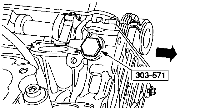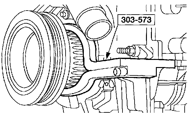 4. NOTE: The special tool must be installed on the damper and should contact the engine block, this positions the engine at TDC.