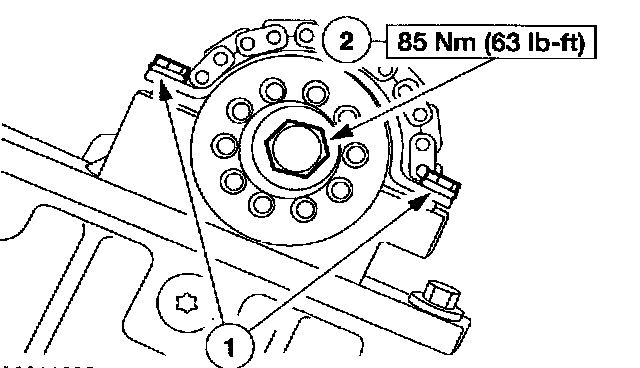 11. CAUTION: The right-hand camshaft sprocket bolt is a left-hand threaded bolt.