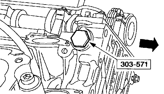 Using the special tool, loosen the RH camshaft sprocket bolt.